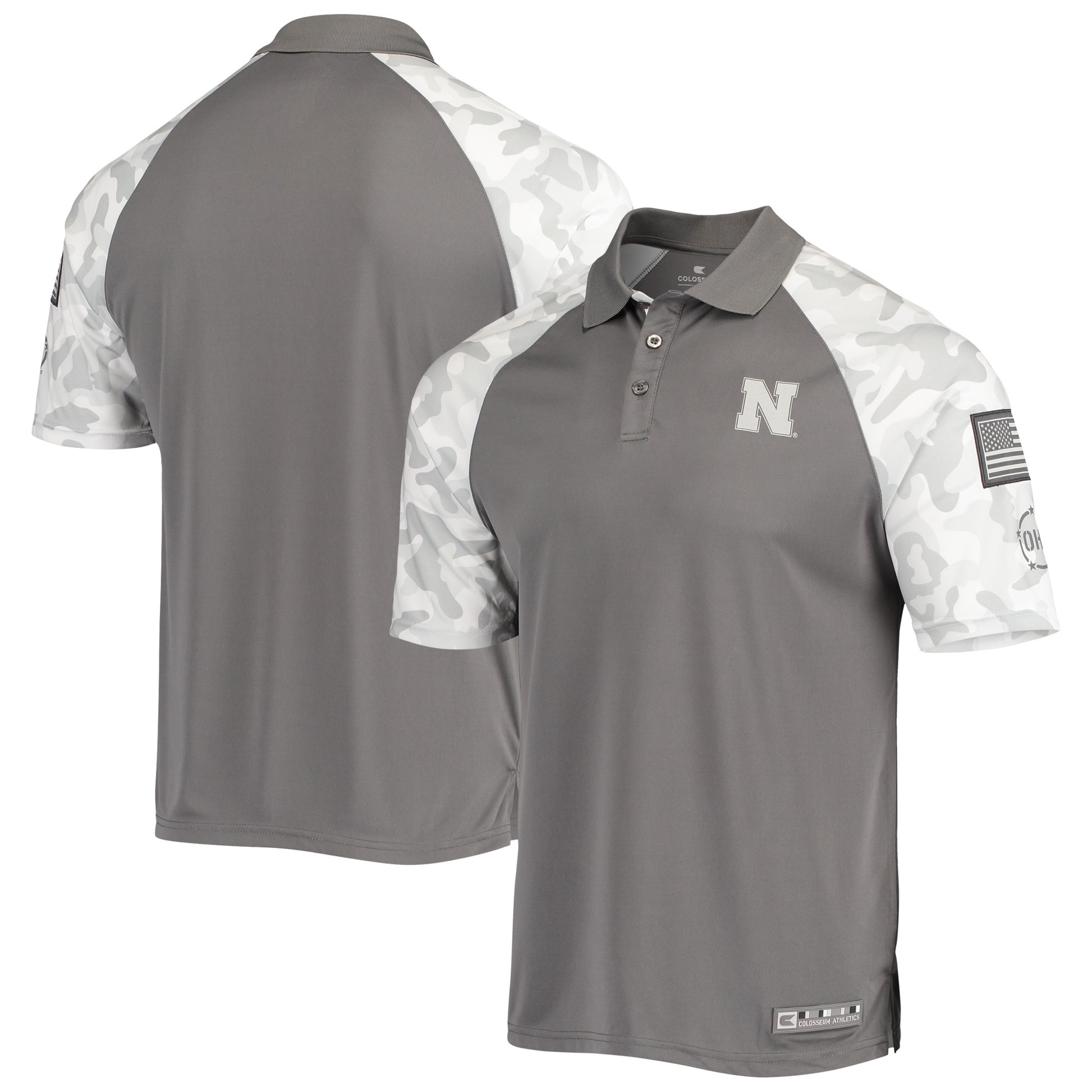Men's Colosseum Gray/Camo Nebraska Huskers OHT Military Appreciation Raglan Zoomie Polo