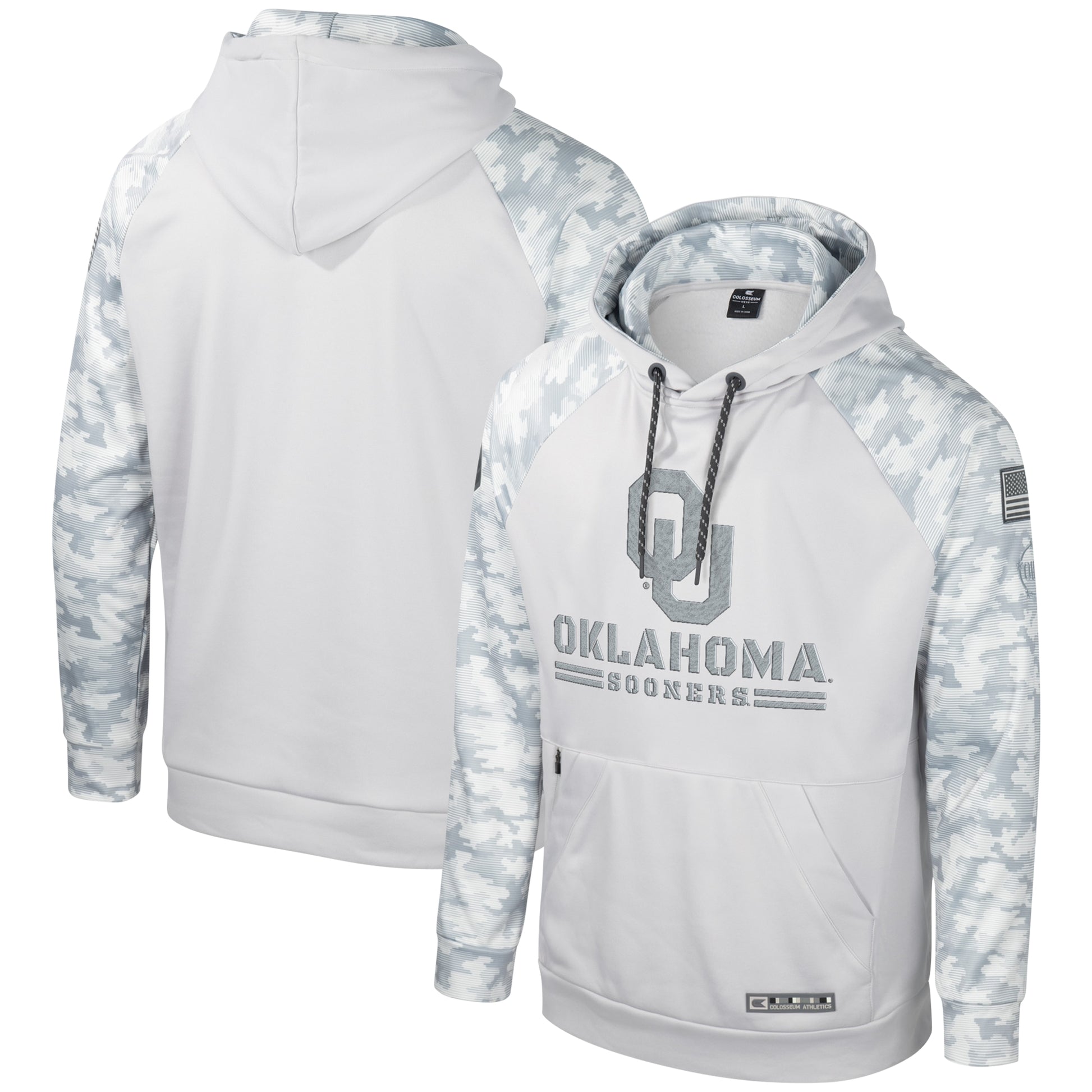 Men's Colosseum Gray Oklahoma Sooners OHT Military Appreciation Ice Raglan Pullover Hoodie