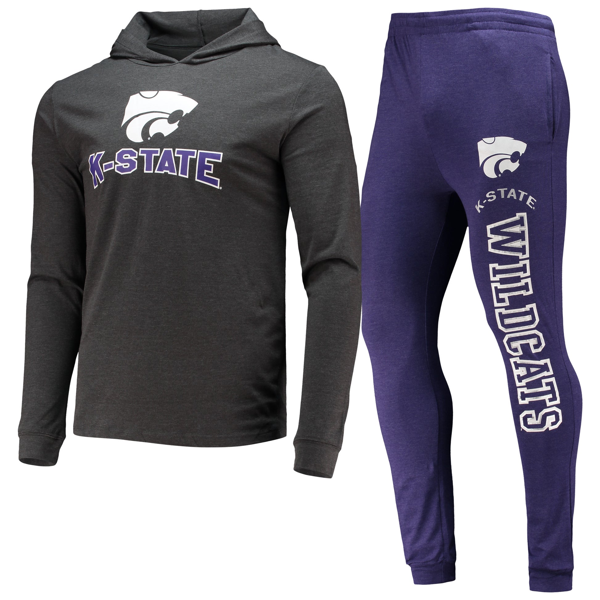 Men's Concepts Sport Purple/Heather Charcoal Kansas State Wildcats Meter Long Sleeve Hoodie T-Shirt & Jogger Pajama Set
