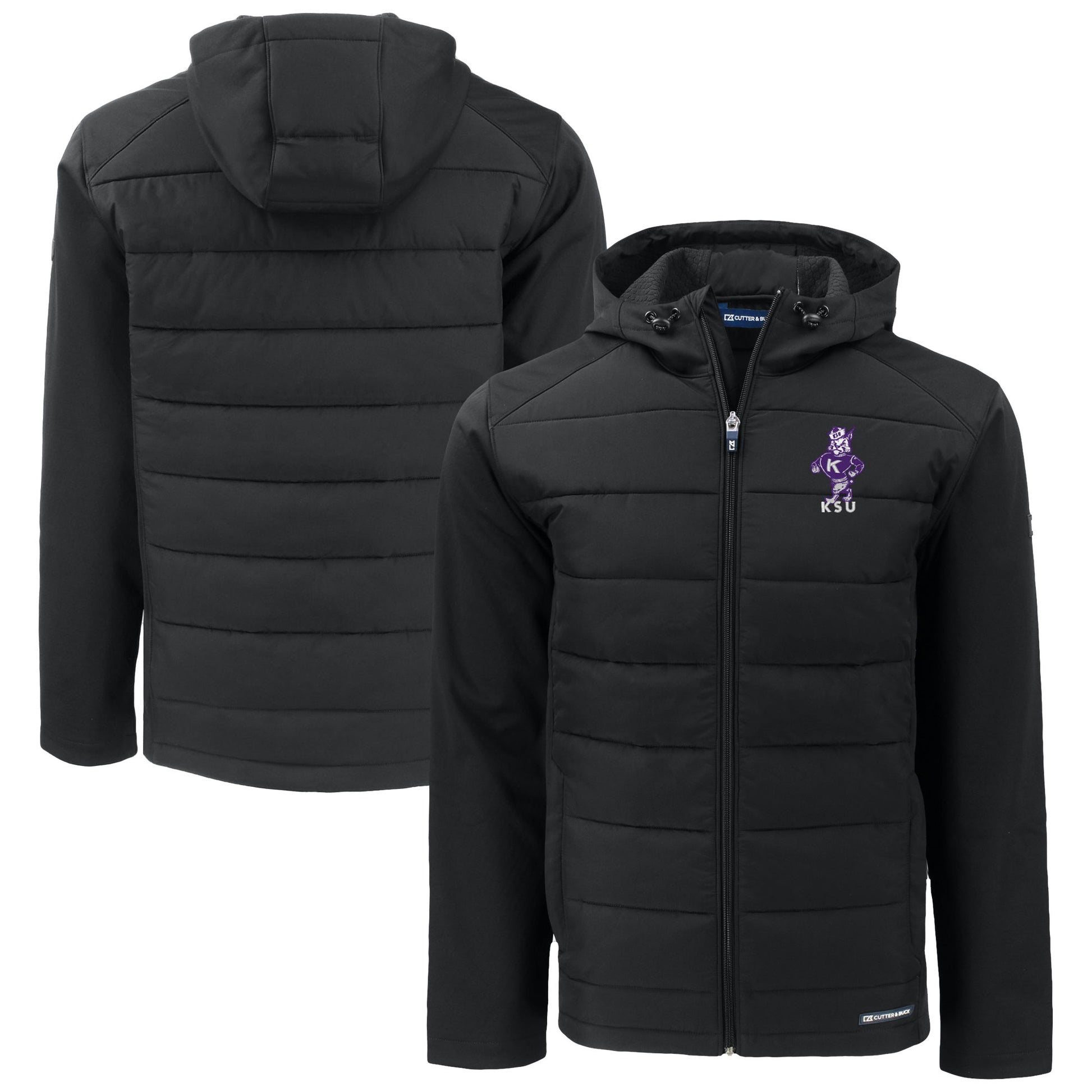 Men's Cutter & Buck Black Kansas State Wildcats Vault Evoke Hybrid Eco Softshell Recycled Full-Zip Hooded Jacket