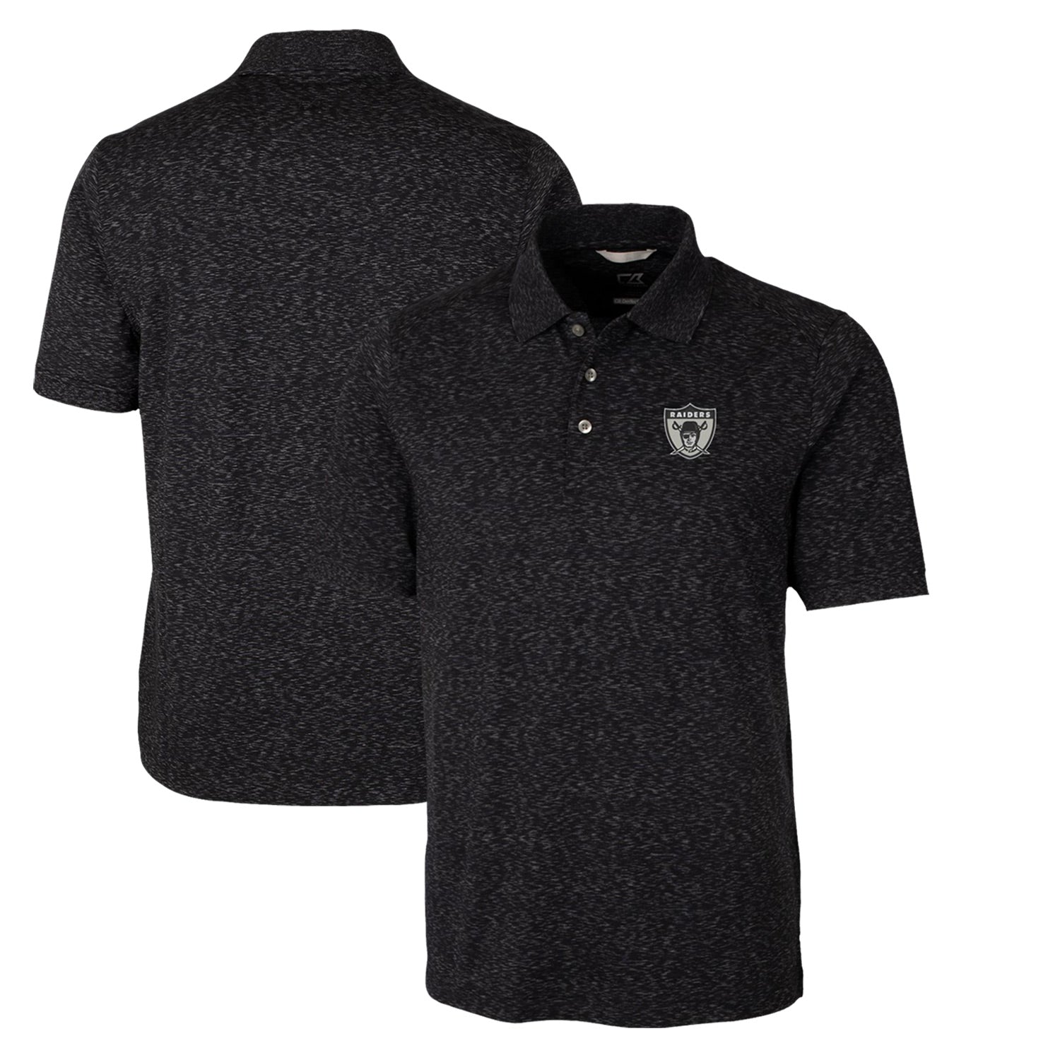 Men's Cutter & Buck Black Las Vegas Raiders Advantage Tri-Blend Space Dye Throwback Polo