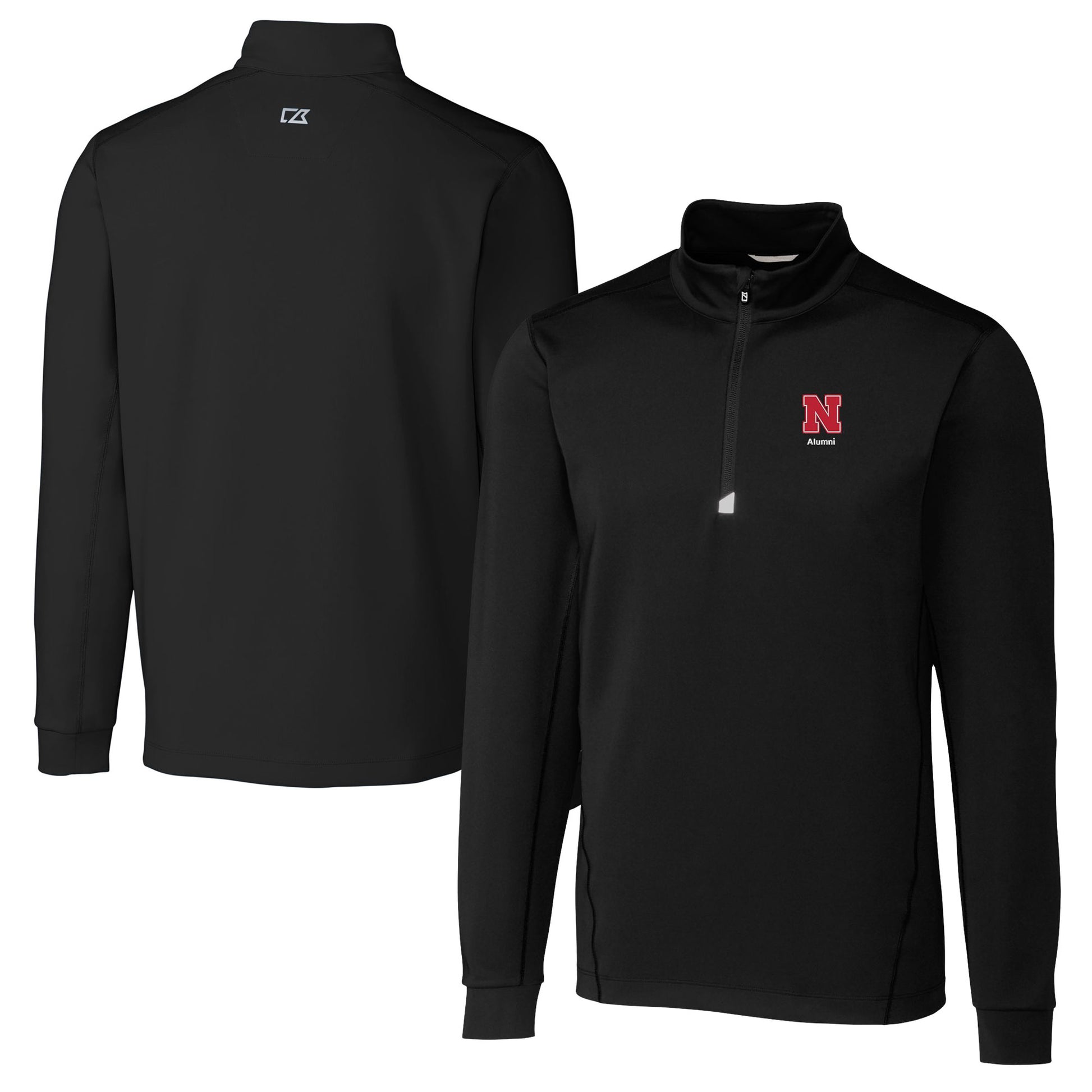Men's Cutter & Buck Black Nebraska Huskers Alumni Logo Traverse Stretch Quarter-Zip Pullover Top