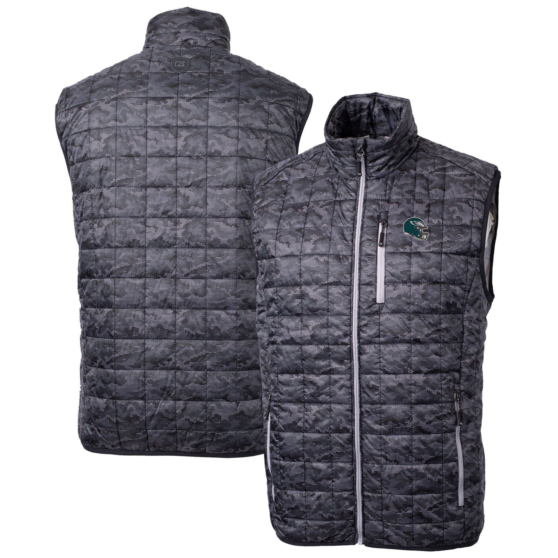 Men's Cutter & Buck Black Philadelphia Eagles Helmet Rainier PrimaLoft Eco Insulated Printed Full-Zip Puffer Vest