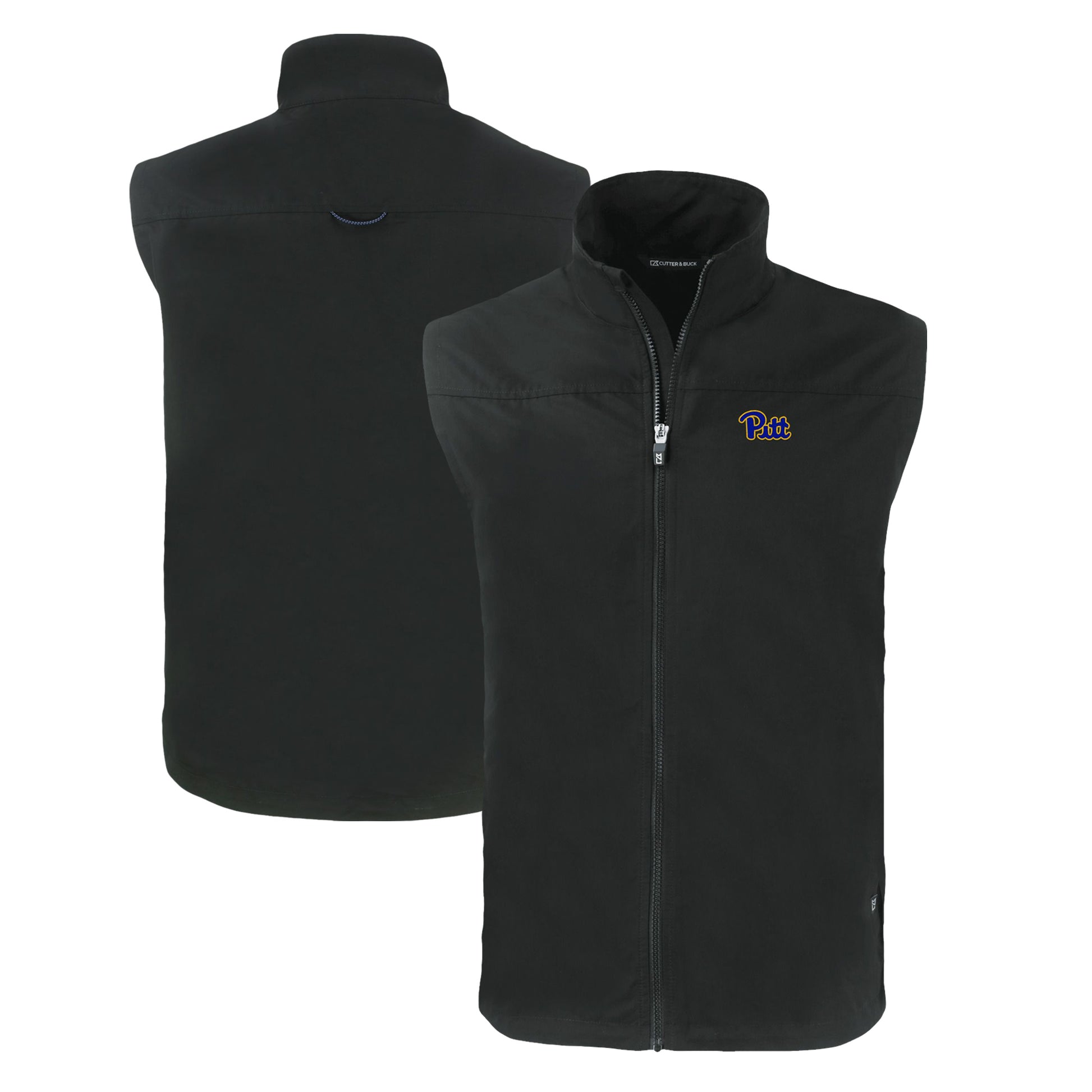 Men's Cutter & Buck Black Pitt Panthers Charter Eco Recycled Full-Zip Vest