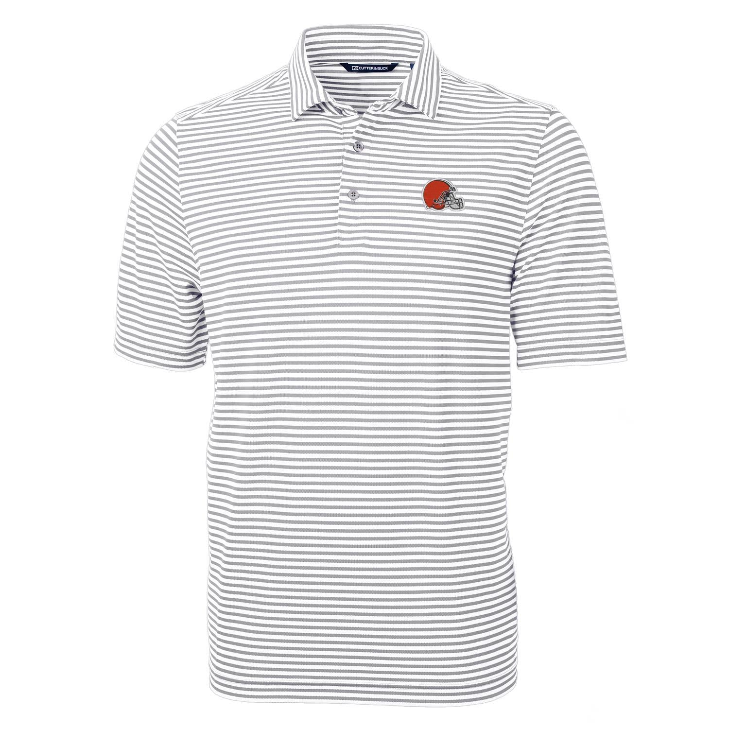 Men's Cutter & Buck Gray Cleveland Browns Virtue Eco Pique Stripe Recycled Polo