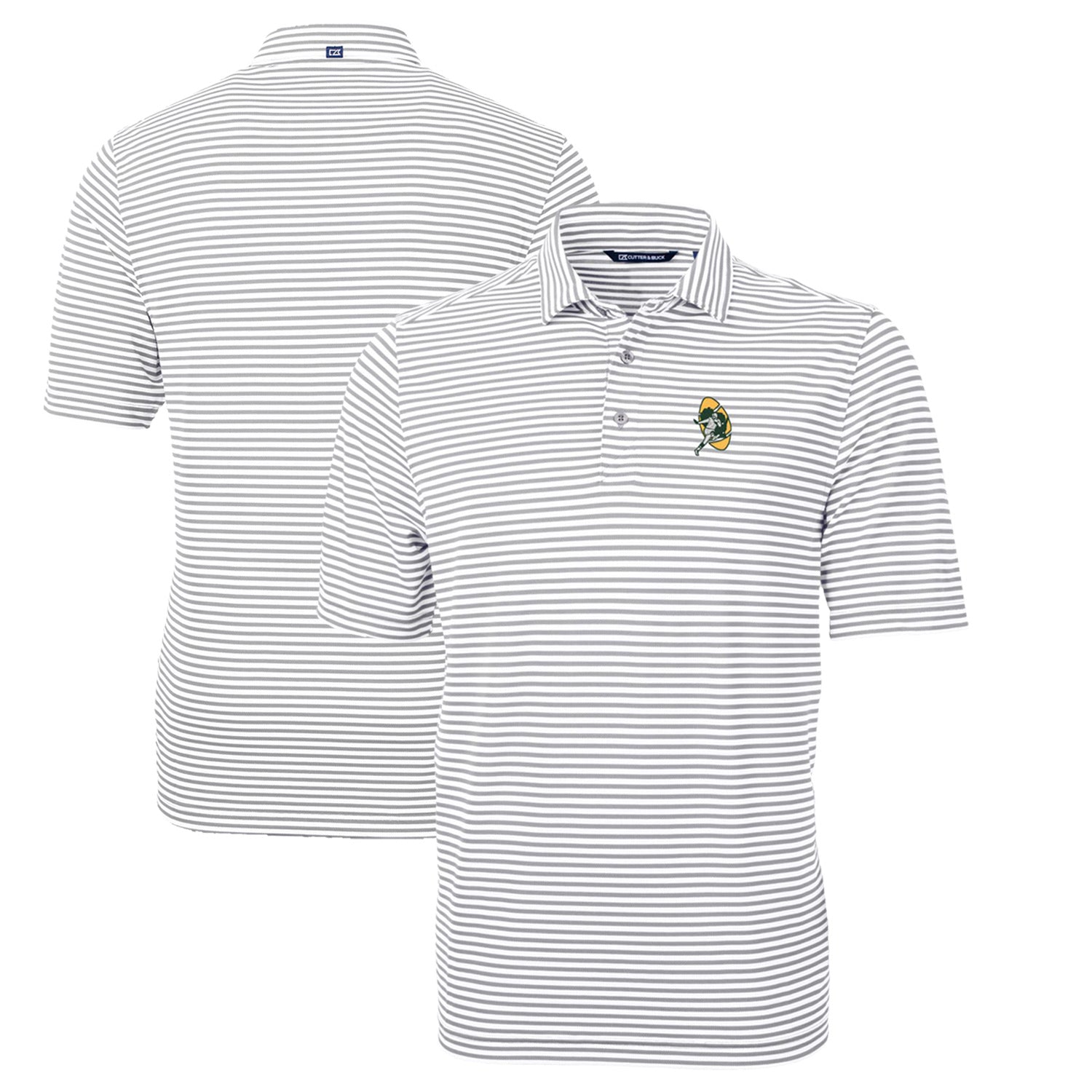 Men's Cutter & Buck Gray Green Bay Packers Throwback Logo Virtue Eco Pique Stripe Recycled Big & Tall Polo