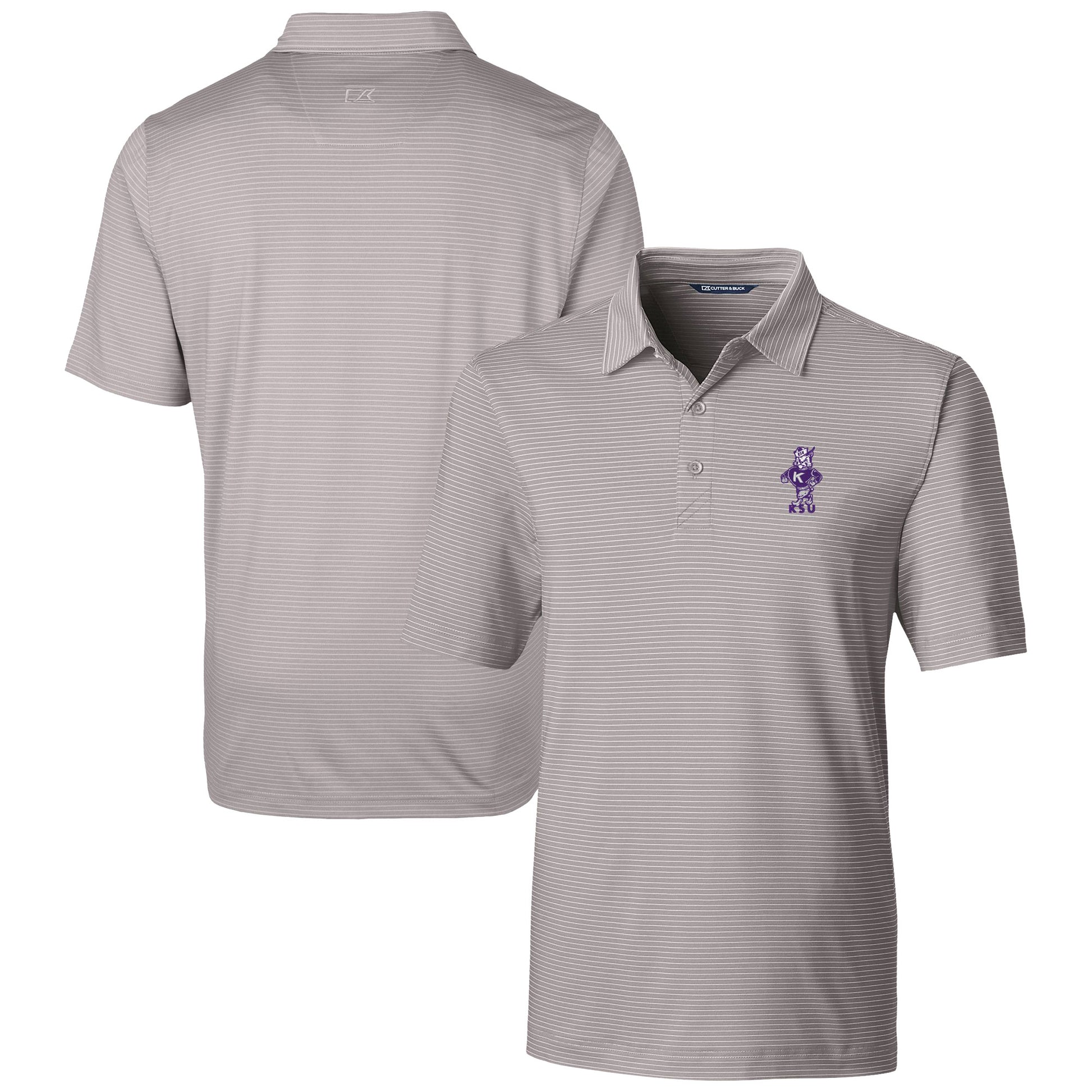 Men's Cutter & Buck Gray Kansas State Wildcats Vault Forge Pencil Stripe Stretch Polo