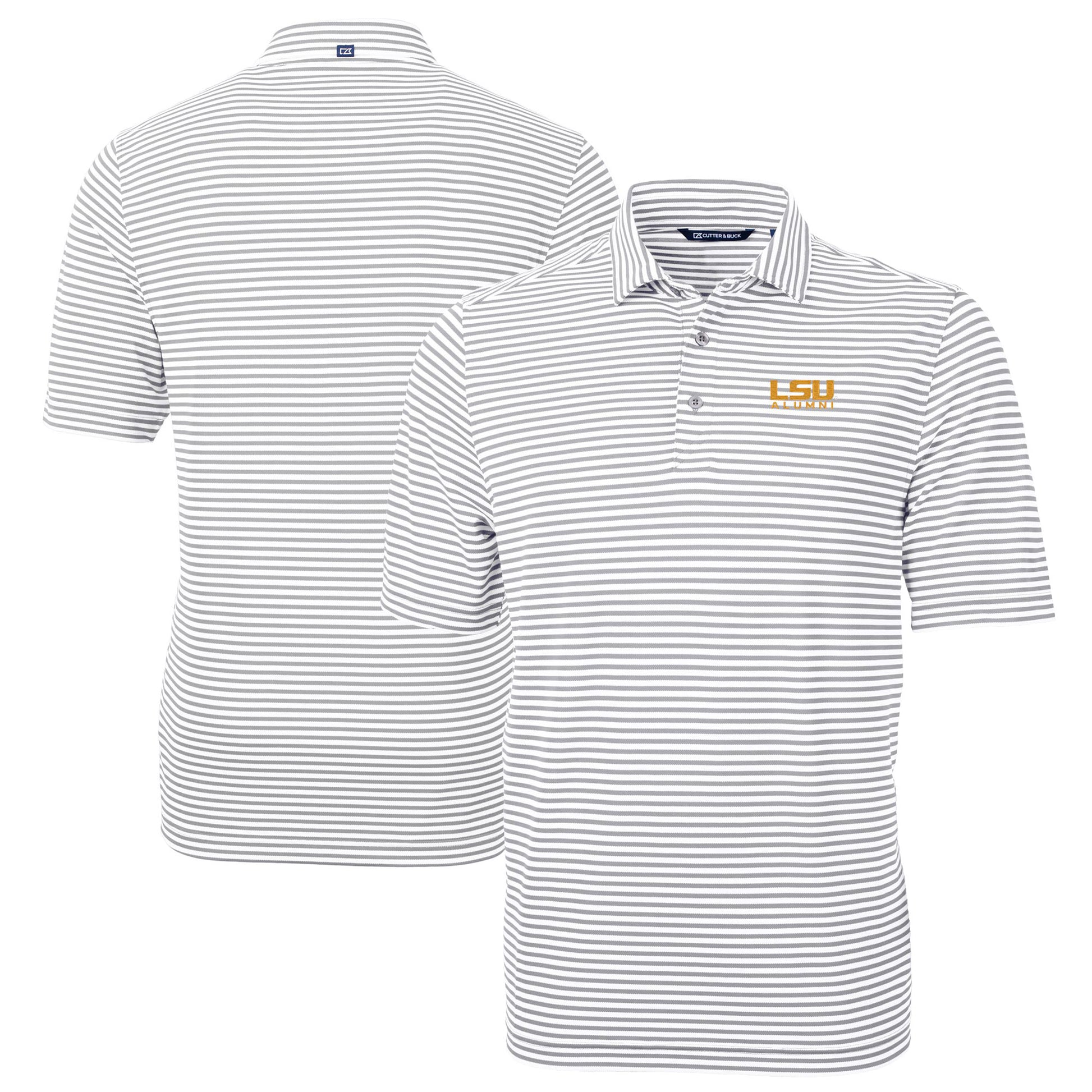 Men's Cutter & Buck Gray LSU Tigers Alumni Logo Virtue Eco Pique Stripe Recycled Polo