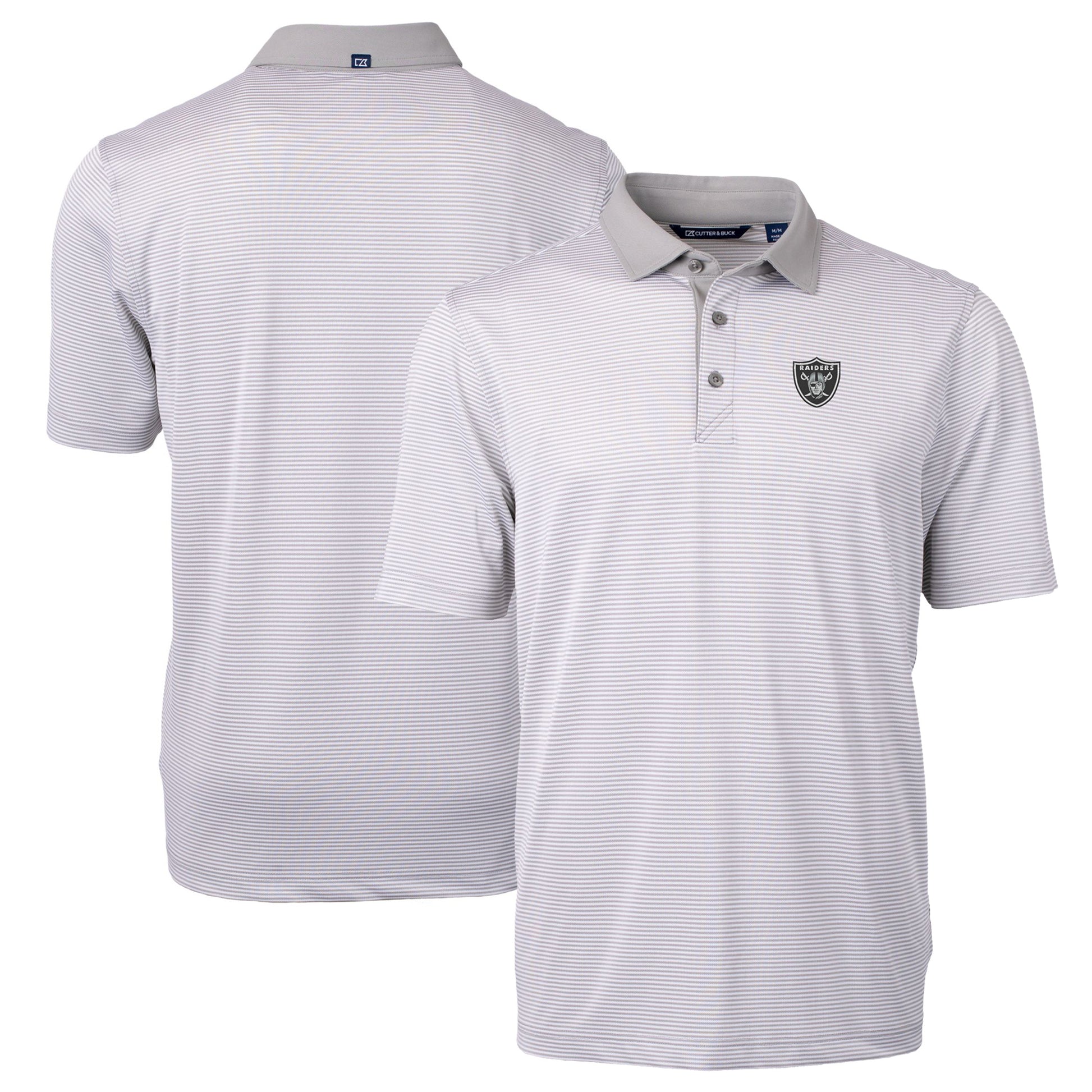 Men's Cutter & Buck Gray/White Las Vegas Raiders Big & Tall Virtue Eco Pique Micro Stripe Recycled Polo