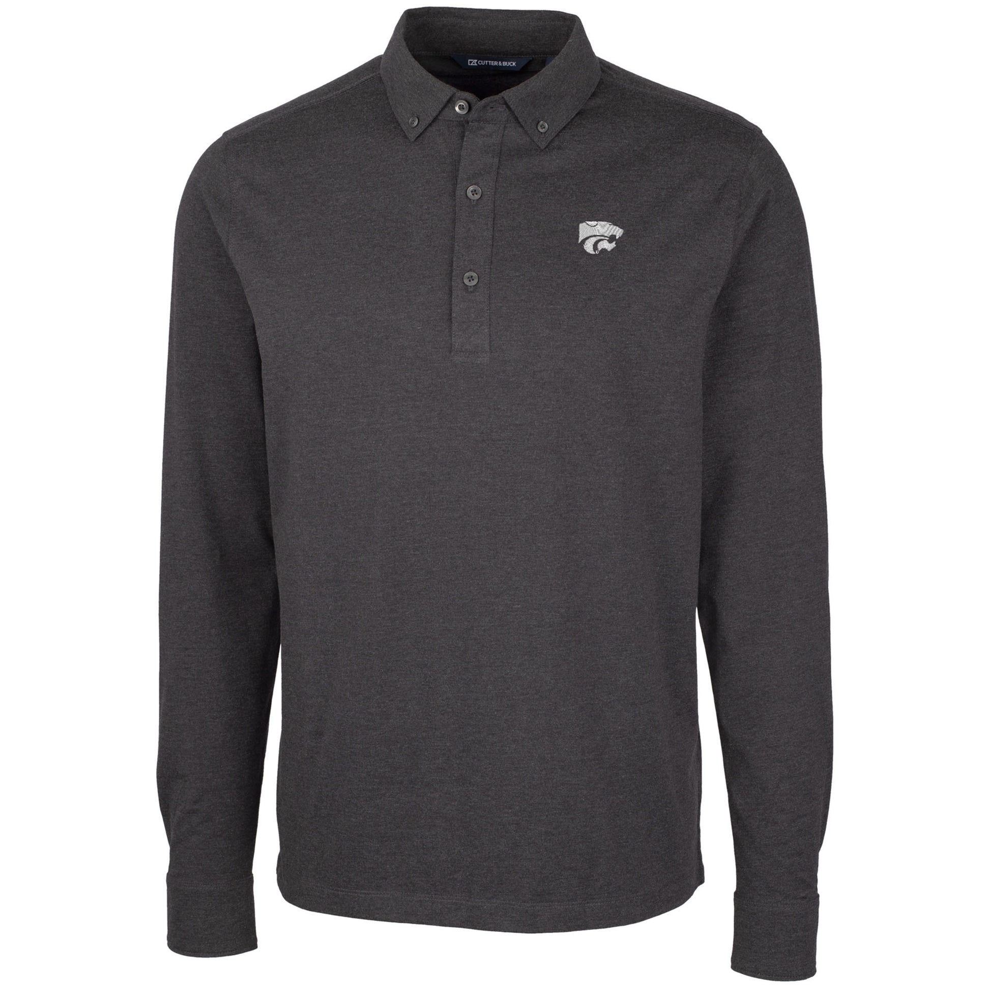 Embrace the spirit of the Kansas State Wildcats with the Men's Cutter & Buck Heather Black Kansas State Wildcats Advantage Long Sleeve Polo. Crafted from a blend of cotton, polyester, and spandex, this polo offers both comfort and durability. Its DryTec technology wicks away moisture, keeping you cool and dry during intense games or casual outings. The rib knit collar and cuffs add a touch of sophistication, while the embroidered Kansas State Wildcats logo proudly displays your unwavering support. Whether you're cheering from the stands or representing your team off the field, this polo is the perfect way to show your Wildcat pride.