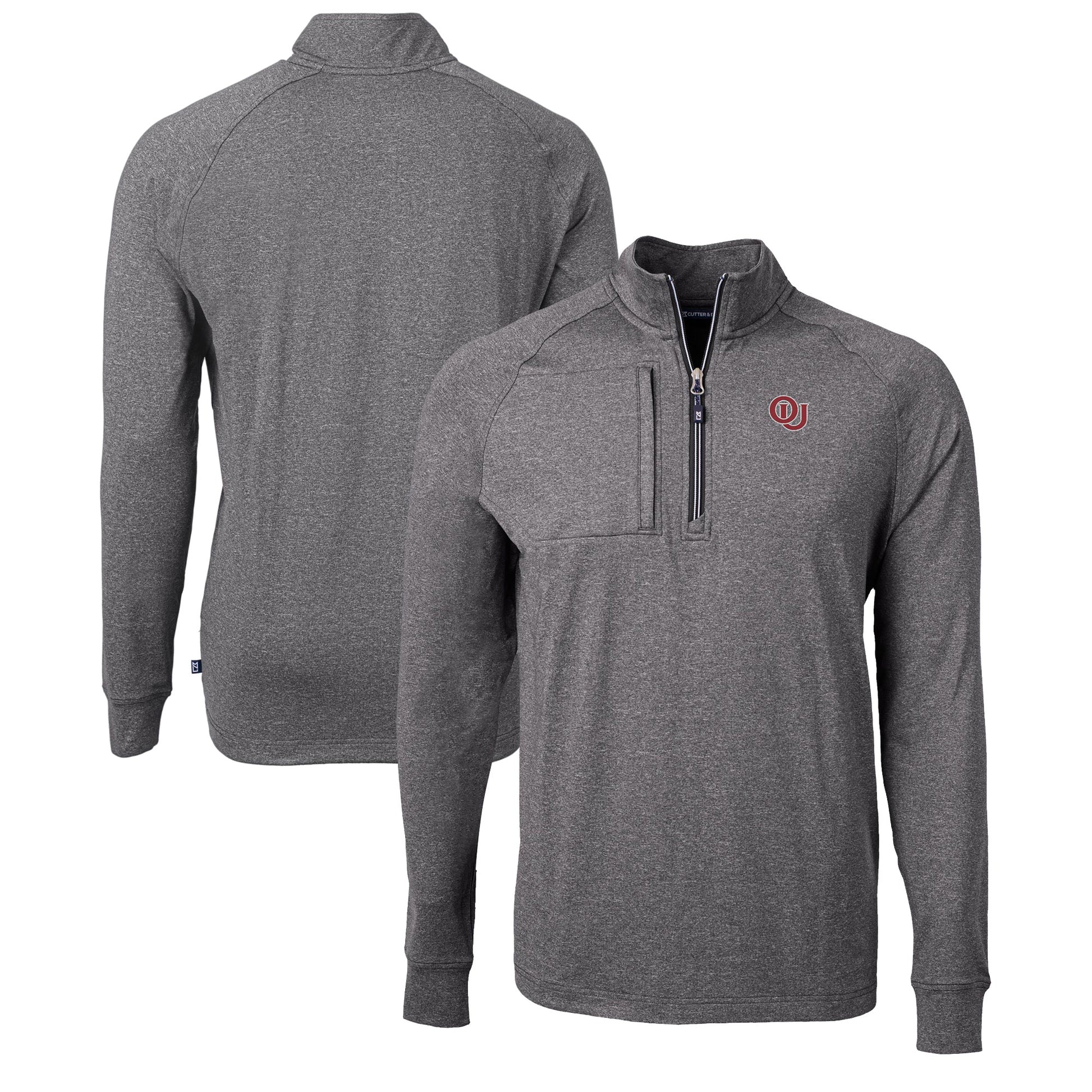 Men's Cutter & Buck Heather Black Oklahoma Sooners Vault Adapt Eco Knit Heathered Recycled Raglan Quarter-Zip Top