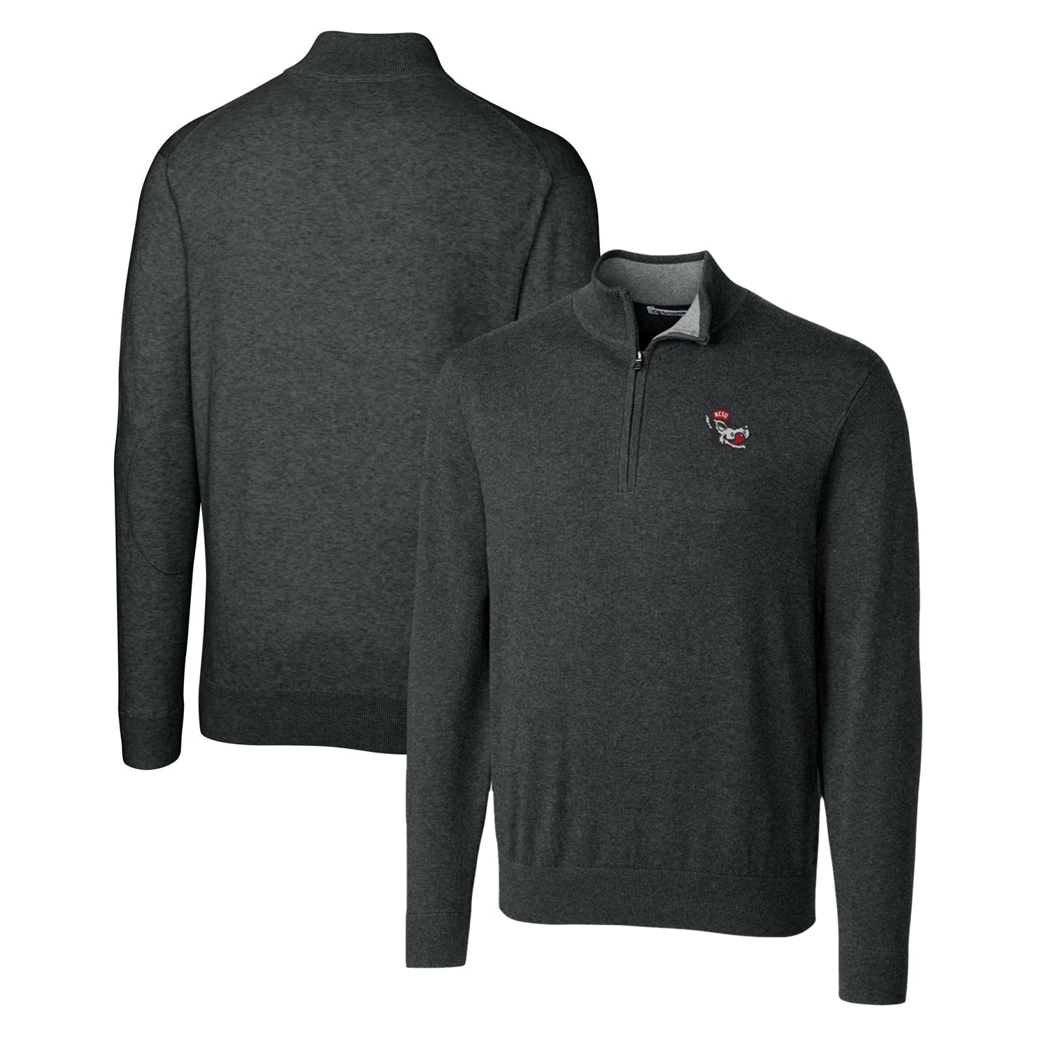Men's Cutter & Buck Heather Charcoal NC State Wolfpack Lakemont Tri-Blend Big & Tall Quarter-Zip Pullover Sweater