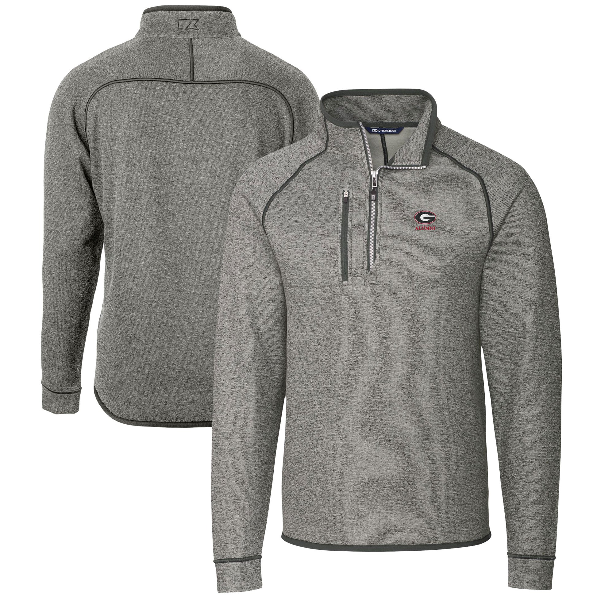 Men's Cutter & Buck Heather Gray Georgia Bulldogs Alumni Logo Mainsail Sweater-Knit Half-Zip Pullover Jacket