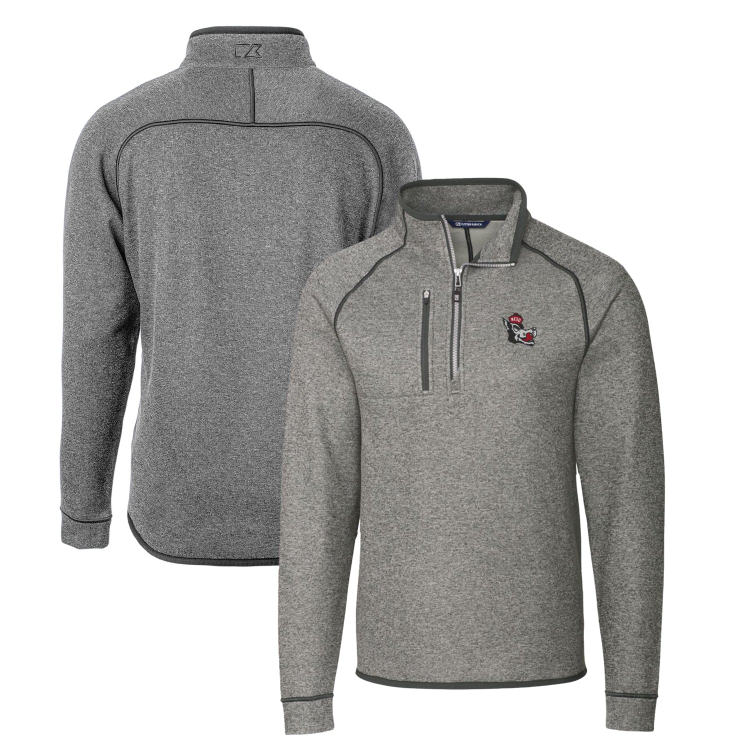 Men's Cutter & Buck Heather Gray NC State Wolfpack Mainsail Sweater-Knit Half-Zip Pullover Jacket