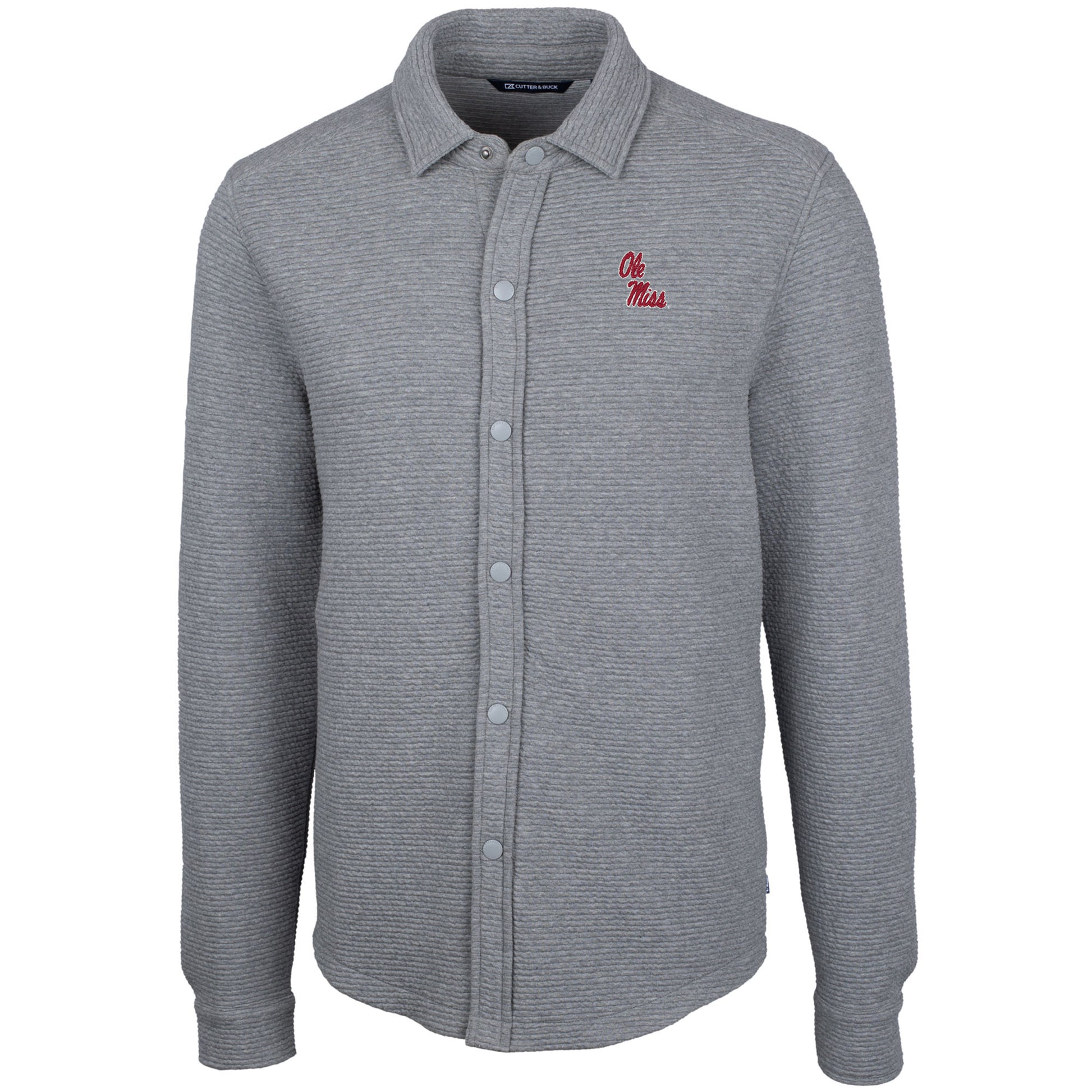 Men's Cutter & Buck Heather Gray Ole Miss Rebels Coastal Button-Up Shirt Jacket