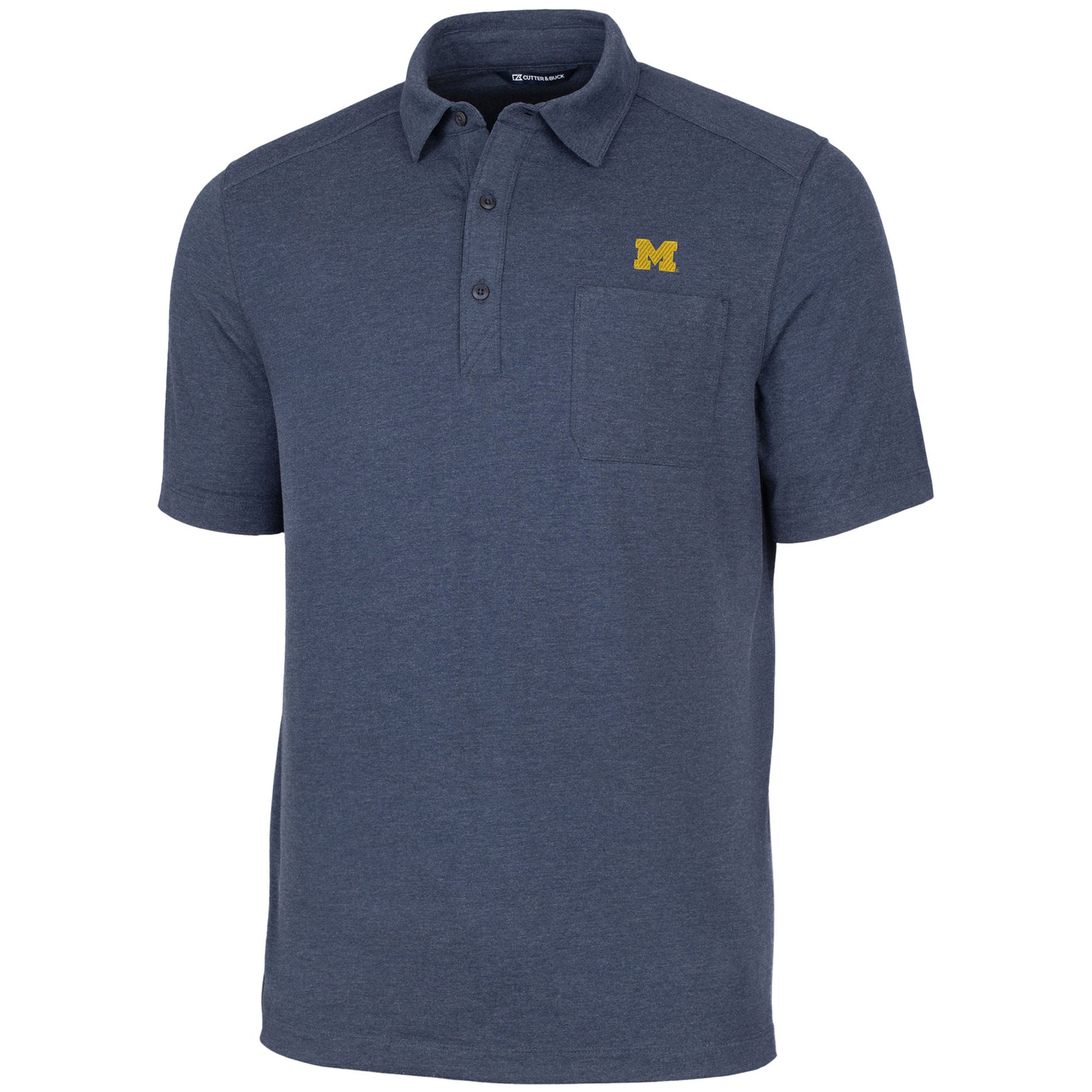 Men's Cutter & Buck Heather Navy Michigan Wolverines Advantage Jersey Polo