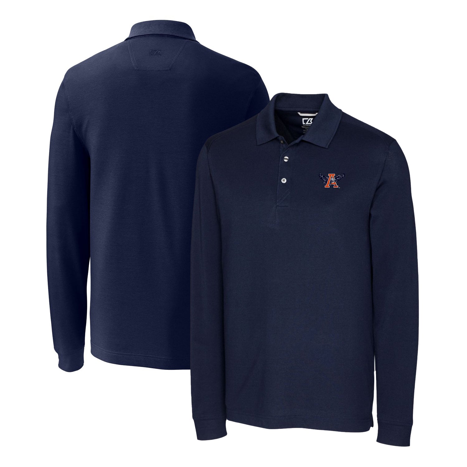 Men's Cutter & Buck Navy Auburn Tigers Advantage Tri-Blend Pique Long Sleeve Polo