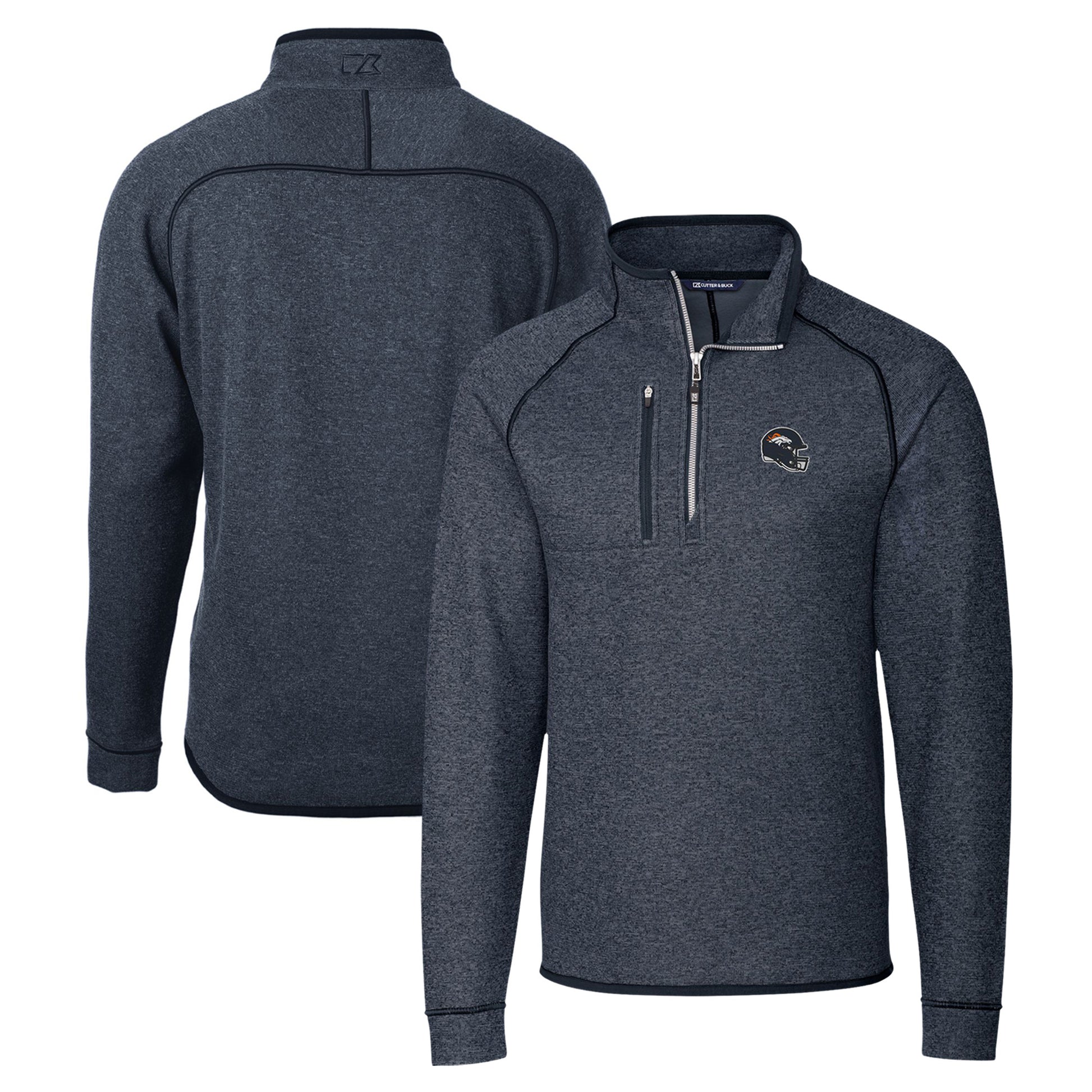 Men's Cutter & Buck Navy Denver Broncos Helmet Mainsail Sweater-Knit Half-Zip Pullover Jacket