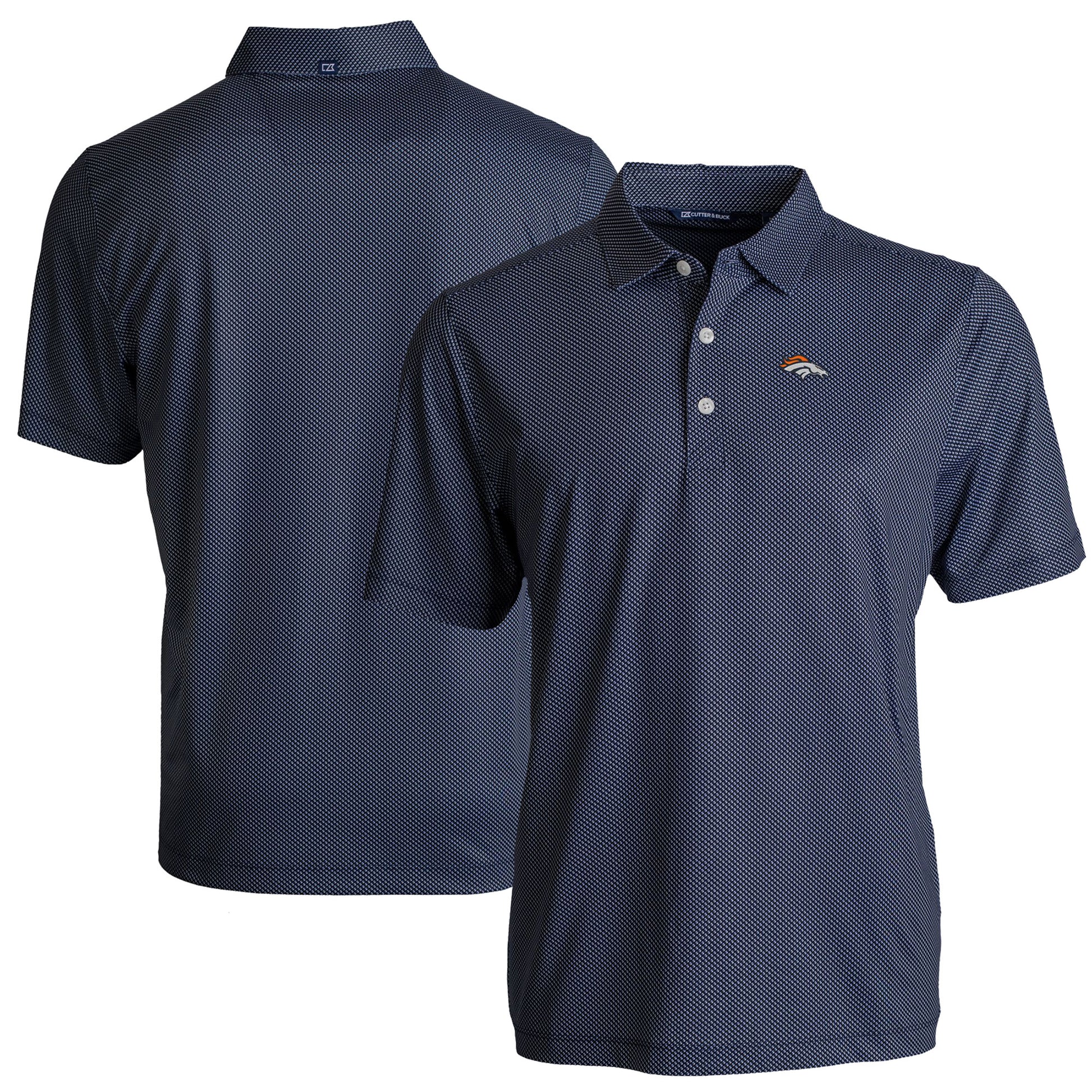 Men's Cutter & Buck Navy Denver Broncos Pike Eco Symmetry Print Stretch Recycled Polo