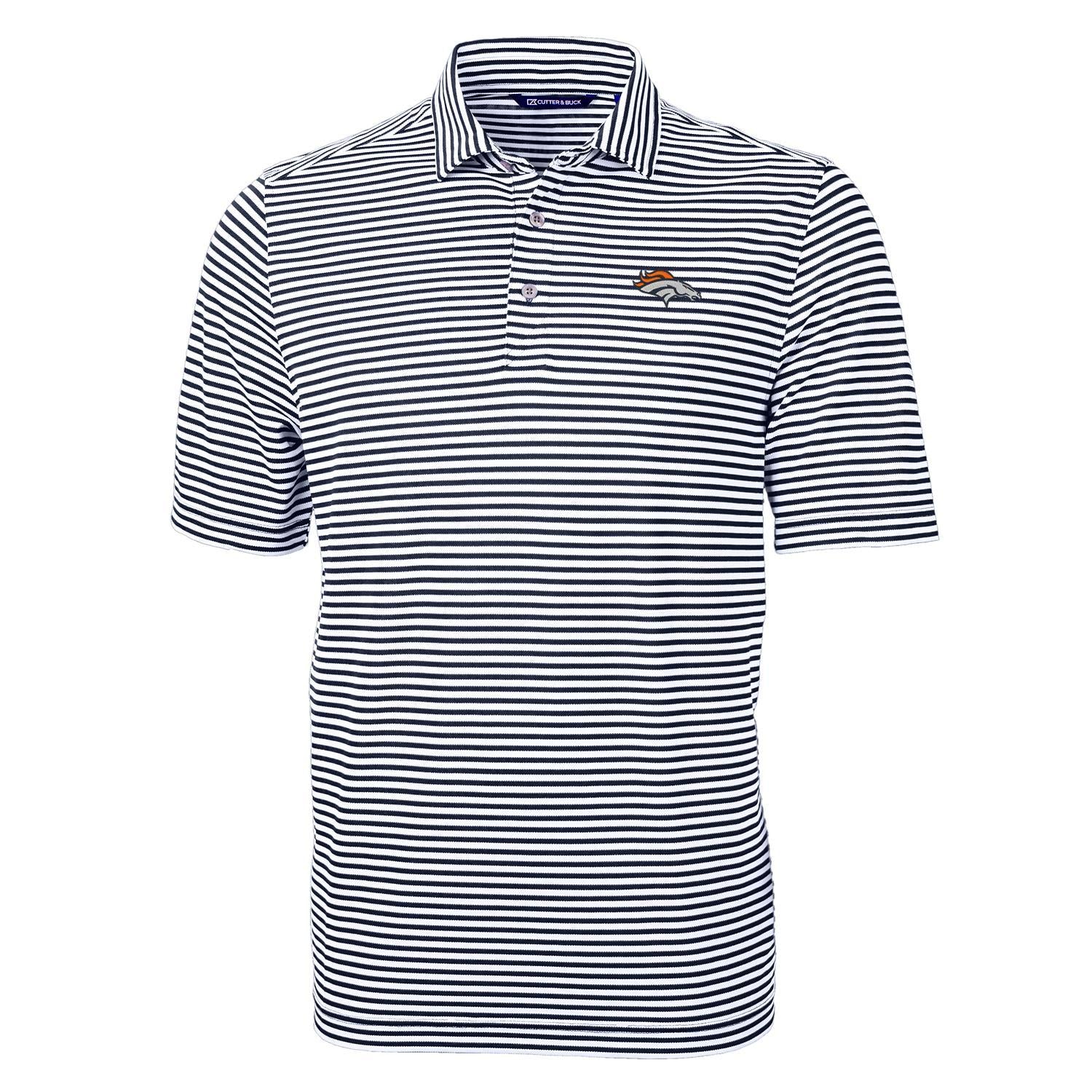 Men's Cutter & Buck Navy Denver Broncos Virtue Eco Pique Stripe Recycled Polo