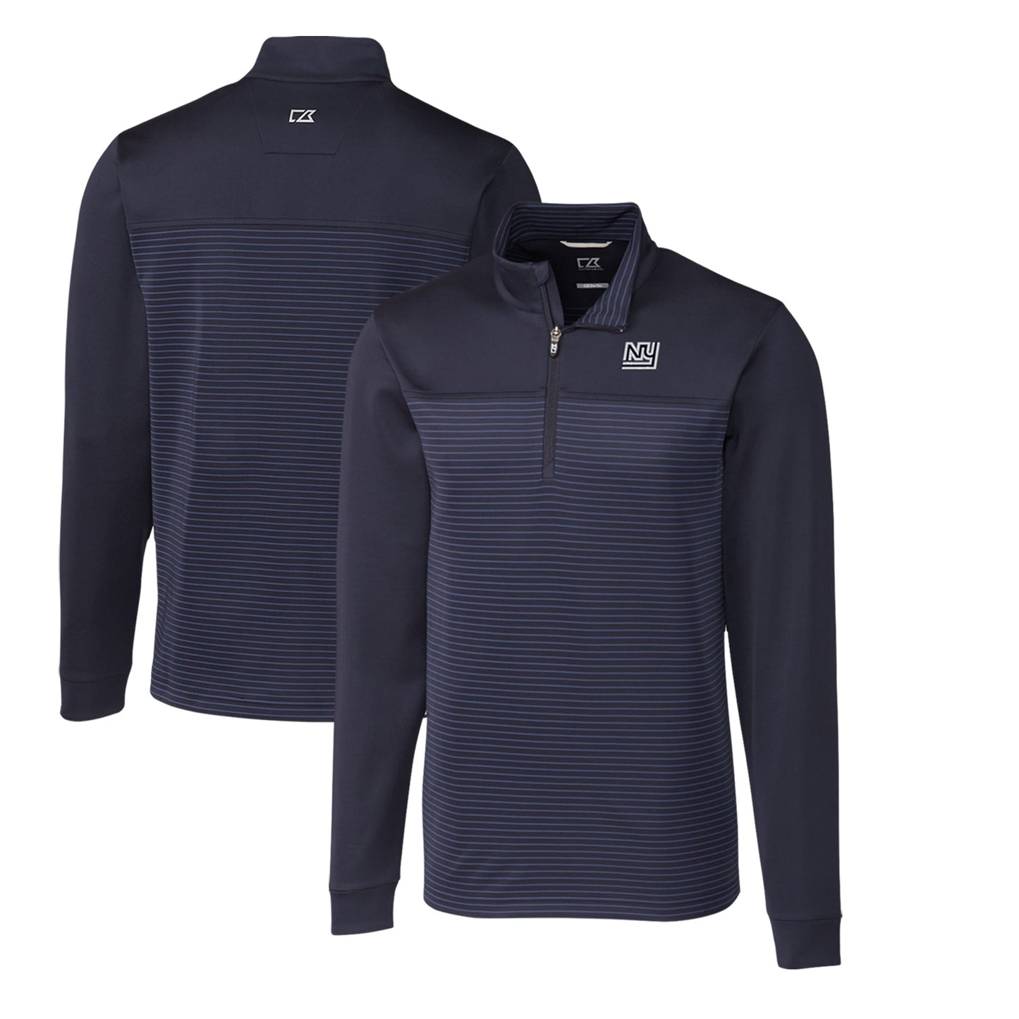 Men's Cutter & Buck Navy New York Giants Throwback Logo Traverse Stripe Stretch Quarter-Zip Big & Tall Pullover Top