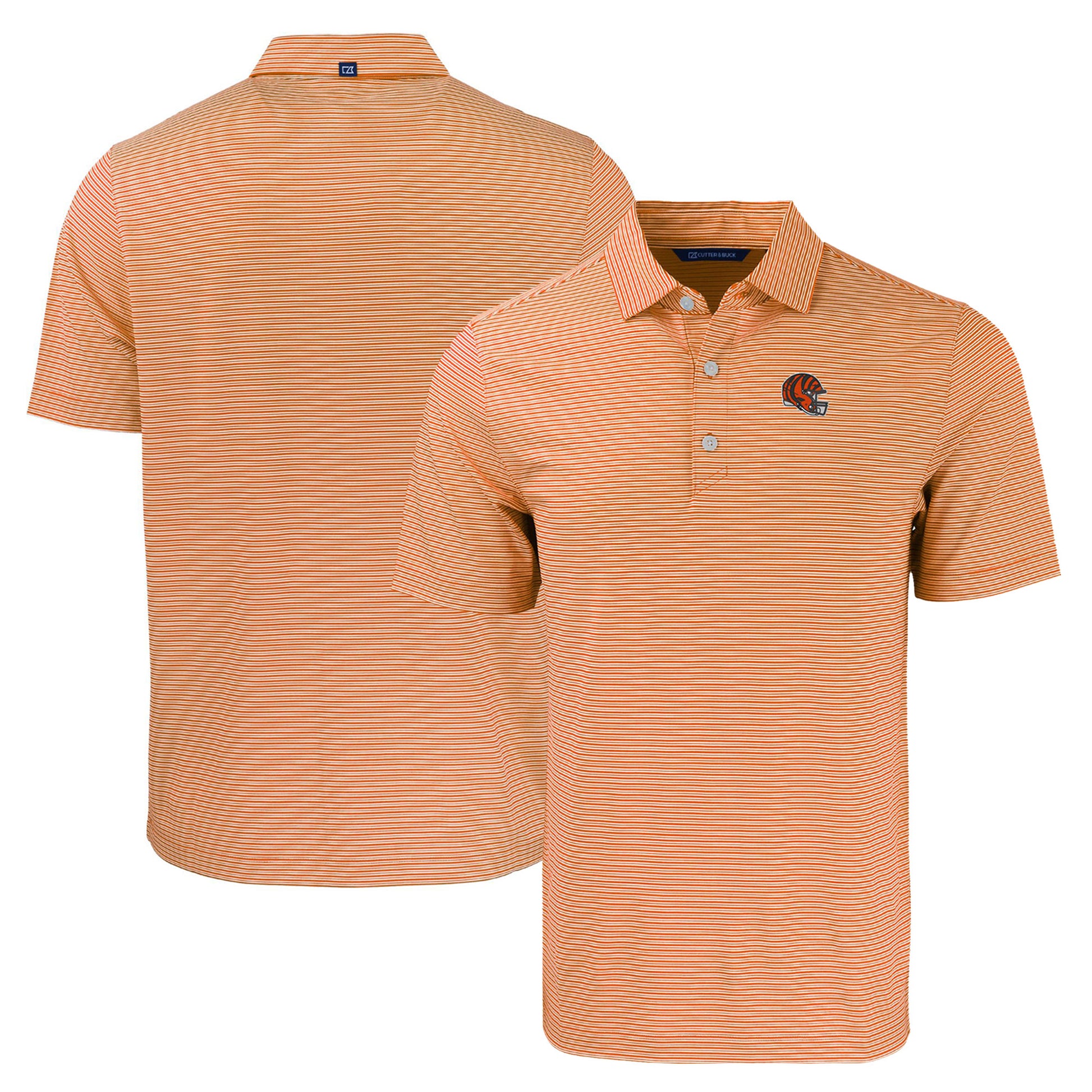 Men's Cutter & Buck Orange Cincinnati Bengals Helmet Forge Eco Double Stripe Stretch Recycled Polo