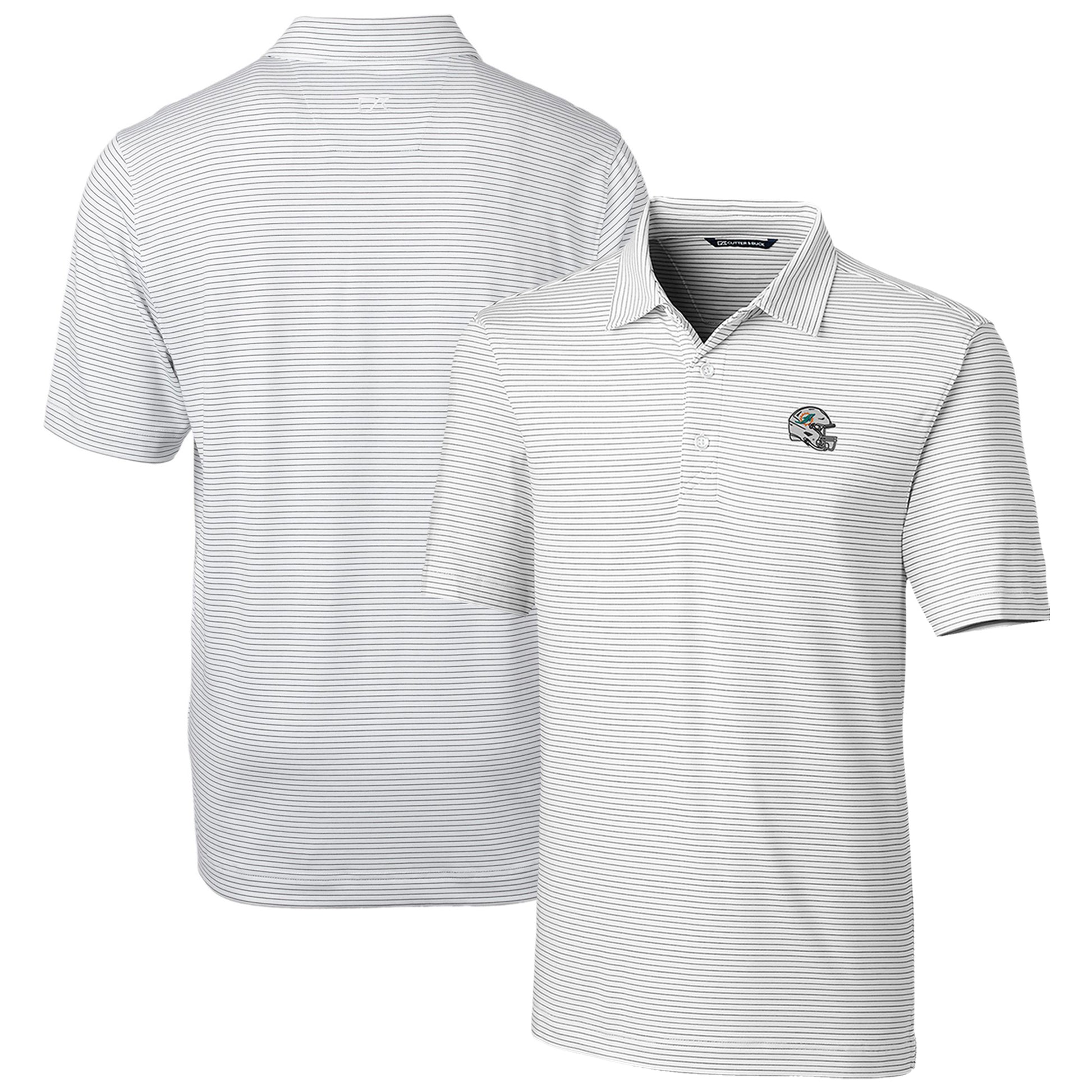 Men's Cutter & Buck White Miami Dolphins Helmet Forge Pencil Stripe Stretch Polo