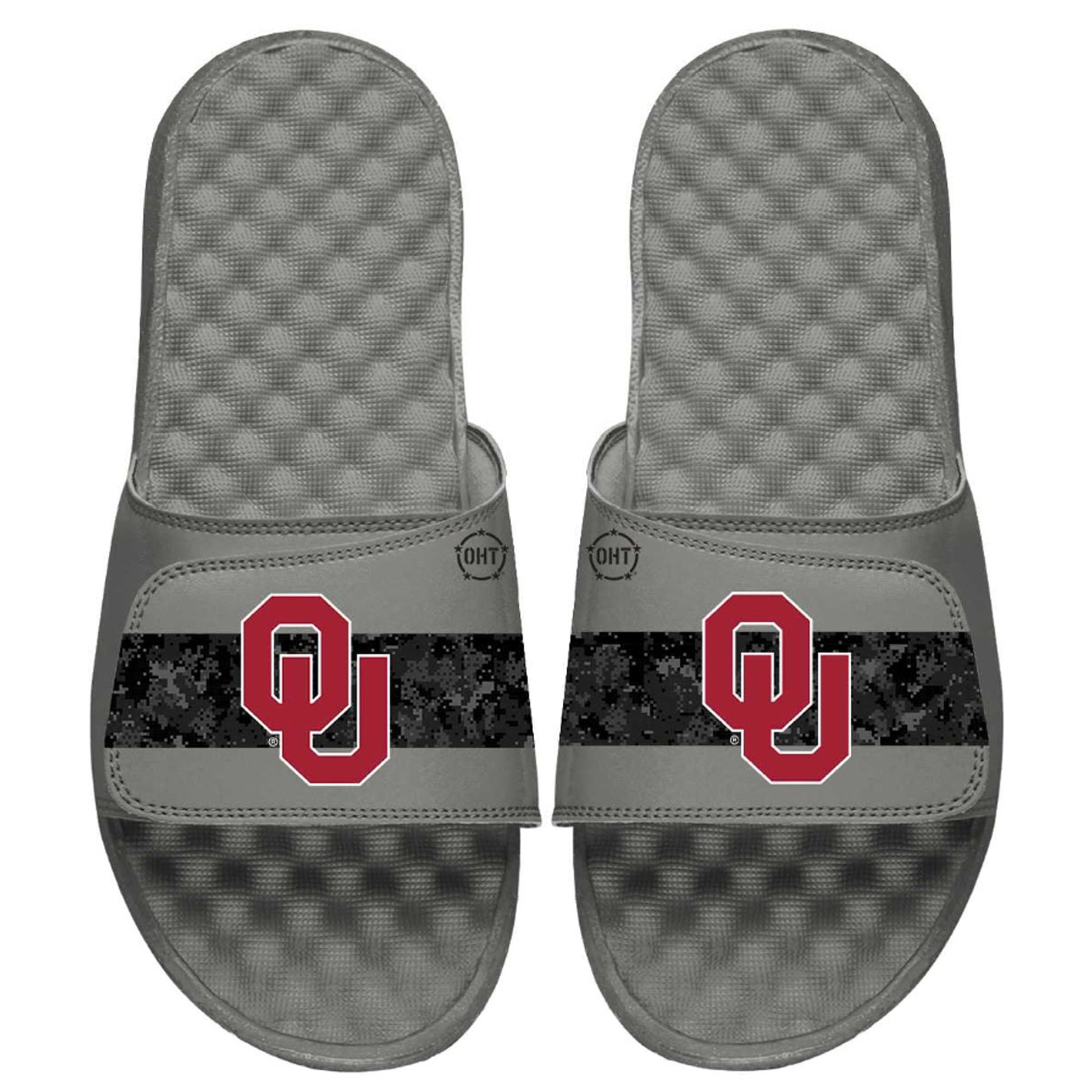 Men's ISlide Gray Oklahoma Sooners OHT Military Appreciation Slide Sandals