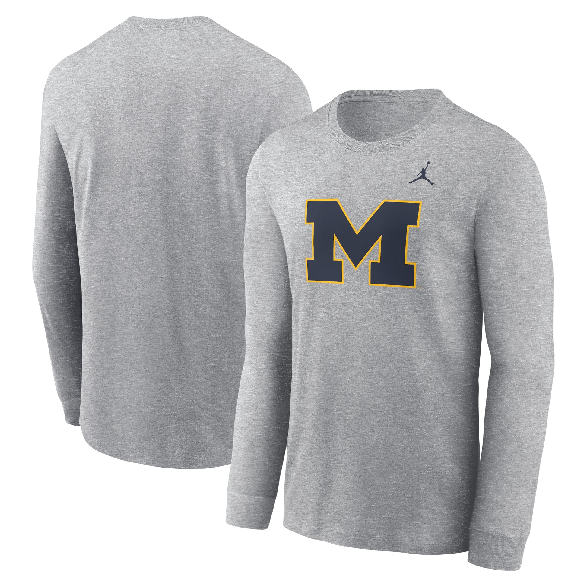 Men's Jordan Brand Heather Gray Michigan Wolverines Primary Logo Long Sleeve T-Shirt