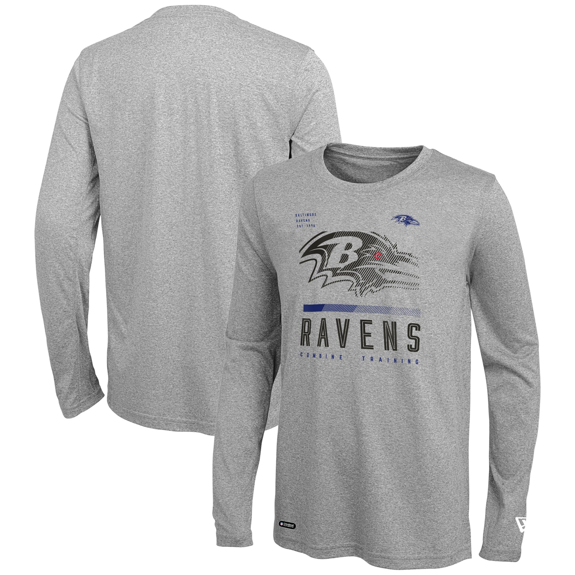 Men's New Era Heathered Gray Baltimore Ravens Combine Authentic Red Zone Long Sleeve T-Shirt