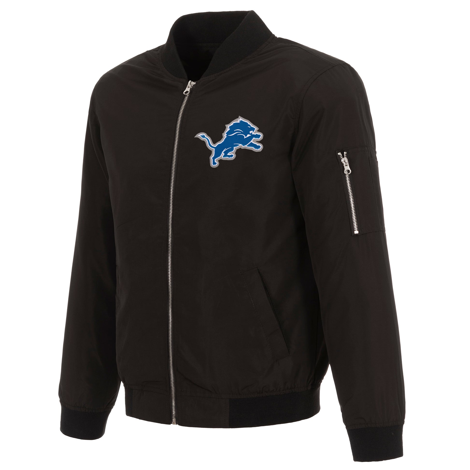 Men's NFL Pro Line by JH Design Black Detroit Lions Full-Zip Bomber Lightweight Jacket
