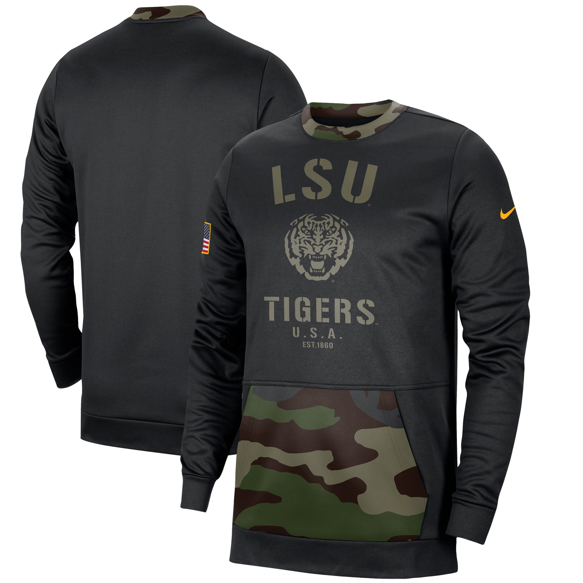 Men's Nike Black/Camo LSU Tigers Military Appreciation Performance Pullover Sweatshirt