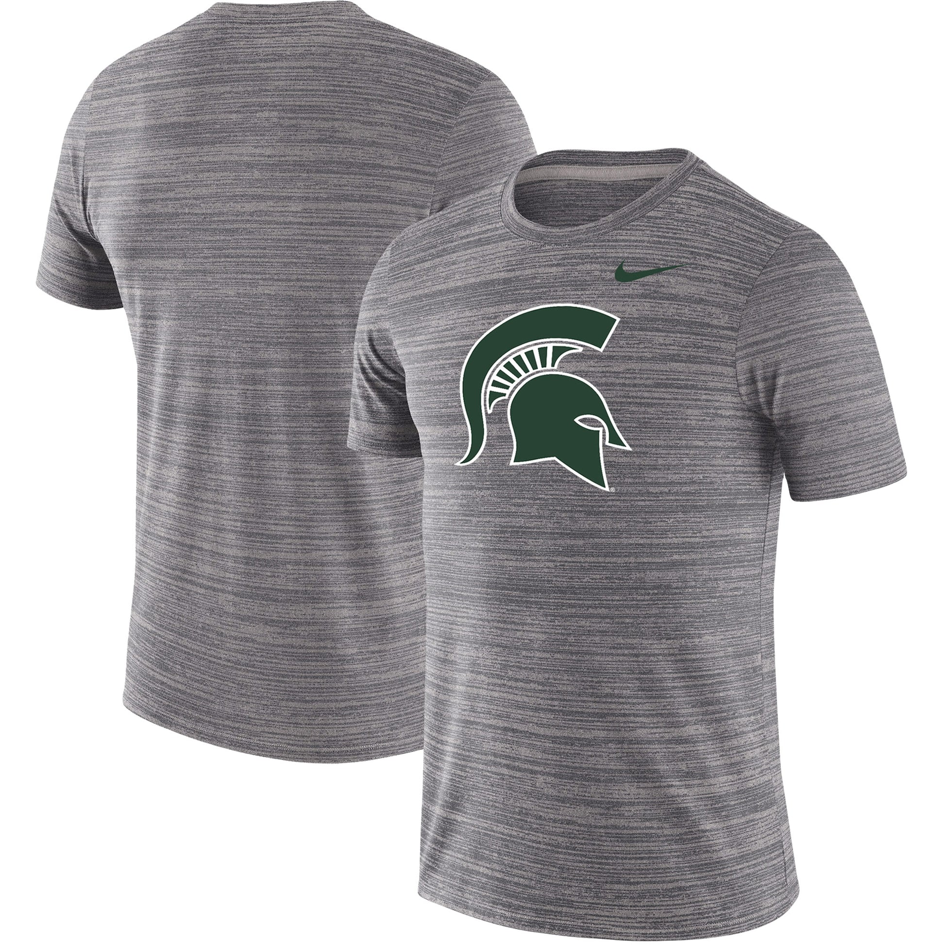 The Men's Nike Charcoal Michigan State Spartans Big & Tall Velocity Space-Dye Performance T-shirt is the perfect way to show your support for the Spartans. Made with Nike Dry fabrics, this shirt will keep you dry and comfortable all game long. The space-dye pattern and screen print graphics add a touch of style, while the back neck taping ensures a comfortable fit. Whether you're cheering from the stands or just showing your support, this shirt is a must-have for any Michigan State Spartans fan.