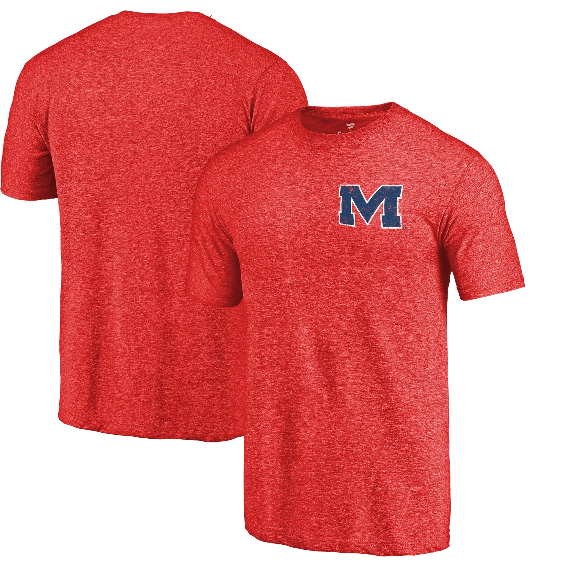 Men's Red Heather Mississippi Ole Miss Left Chest Distressed Logo Tri-Blend T-Shirt