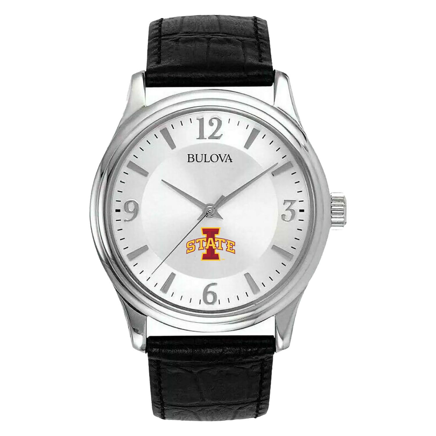 Men's Silver Iowa State Cyclones Leather Watch