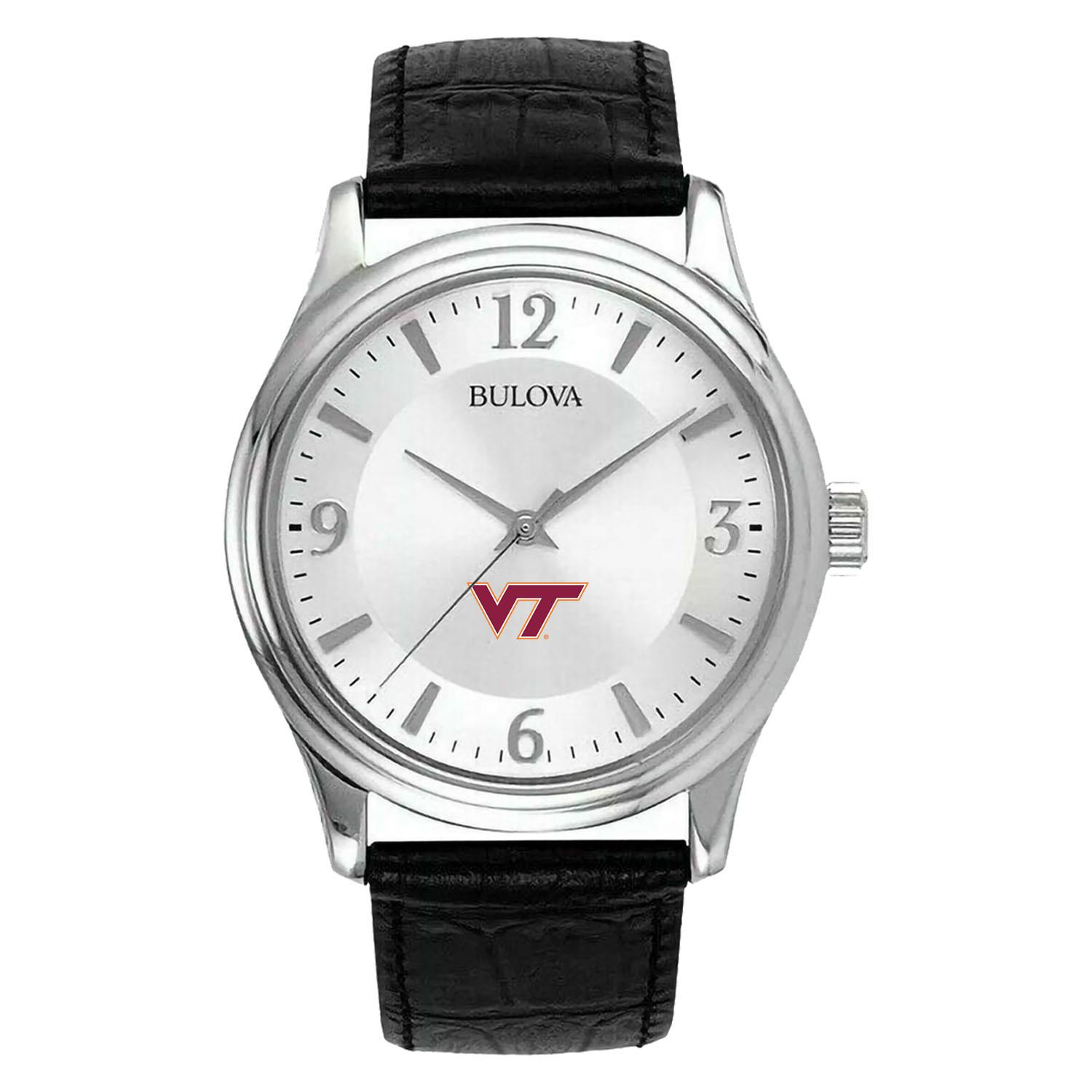 Men's Silver Virginia Tech Hokies Leather Watch