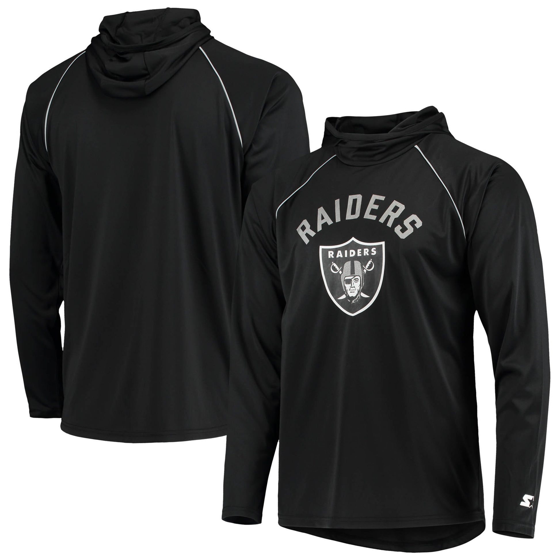 Men's Starter Black Las Vegas Raiders Raglan Long Sleeve Hoodie T-Shirt