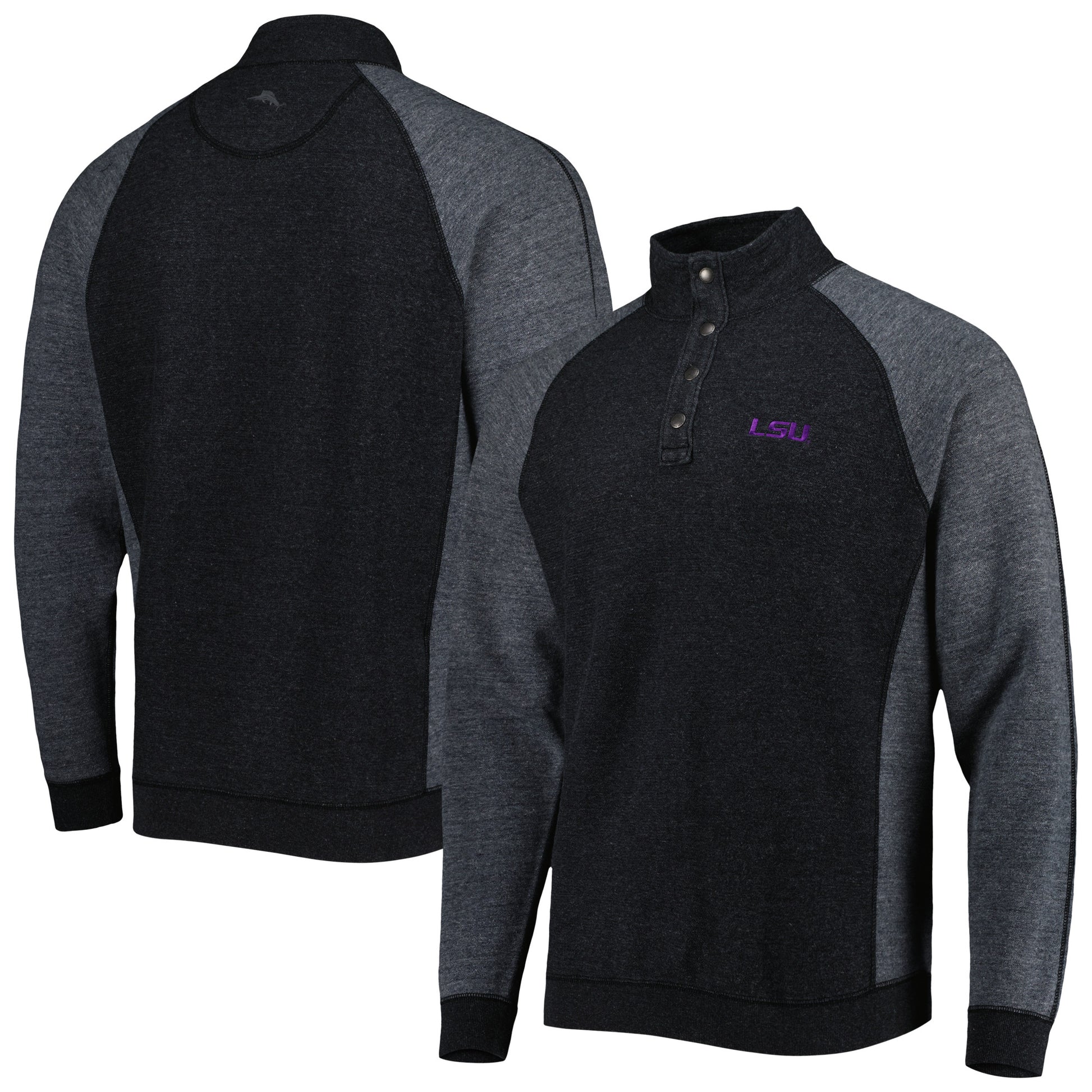Men's Tommy Bahama Black LSU Tigers Sport Scrimmage Snap Mock Neck Raglan Button-Up Jacket
