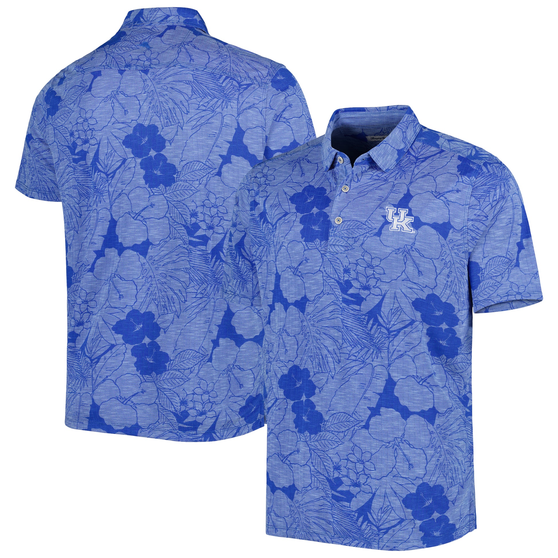 The Men's Tommy Bahama Royal Kentucky Wildcats Miramar Blooms Polo is a stylish and comfortable choice for any Kentucky Wildcats enthusiast. Its embroidered graphics and woven design add a touch of sophistication, while the three-button placket ensures a secure fit. Made from a blend of tencel modal and recycled polyester, this polo is perfect for showing your support for the Kentucky Wildcats both on and off the field.
