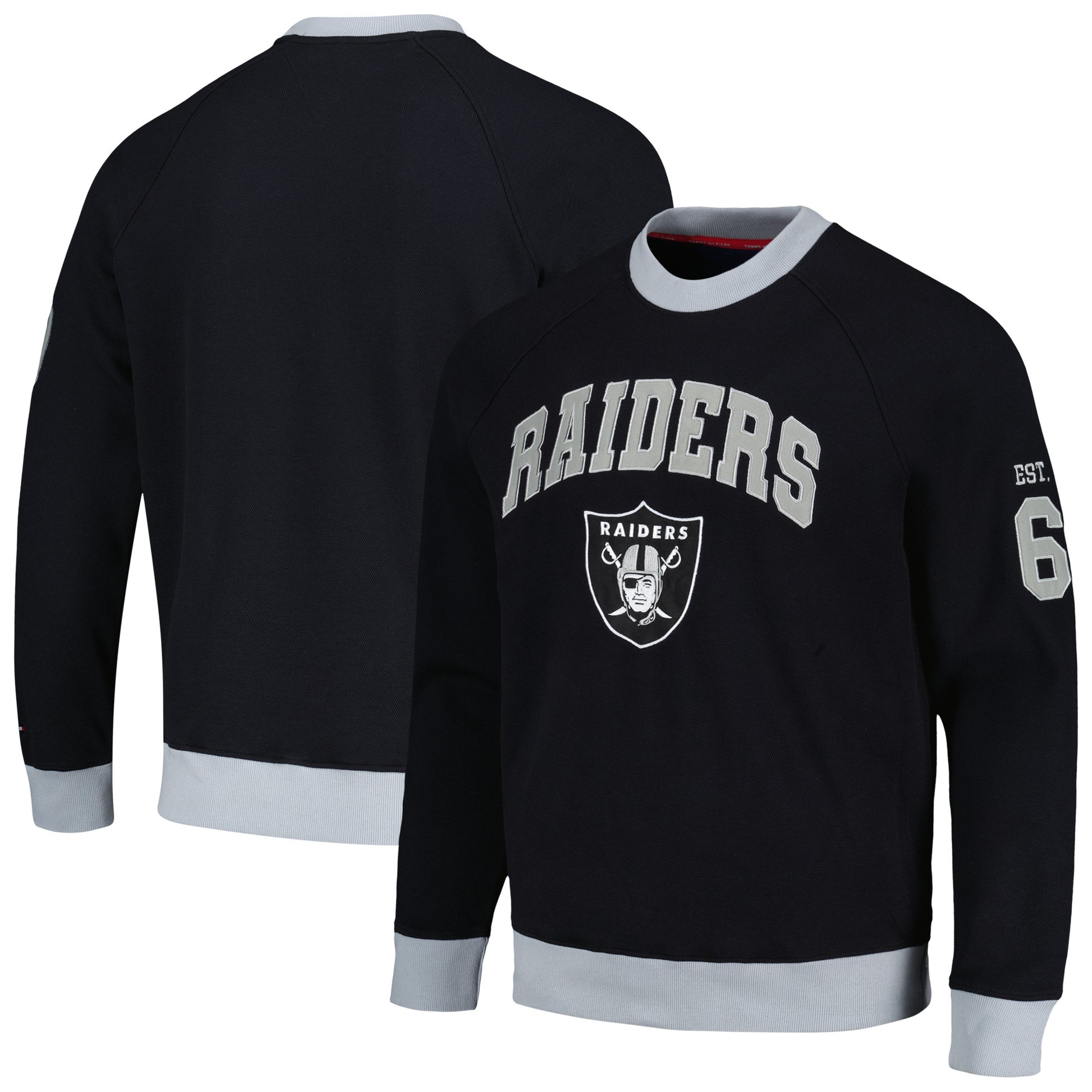 Men's Tommy Hilfiger Black Las Vegas Raiders Reese Raglan Tri-Blend Pullover Sweatshirt