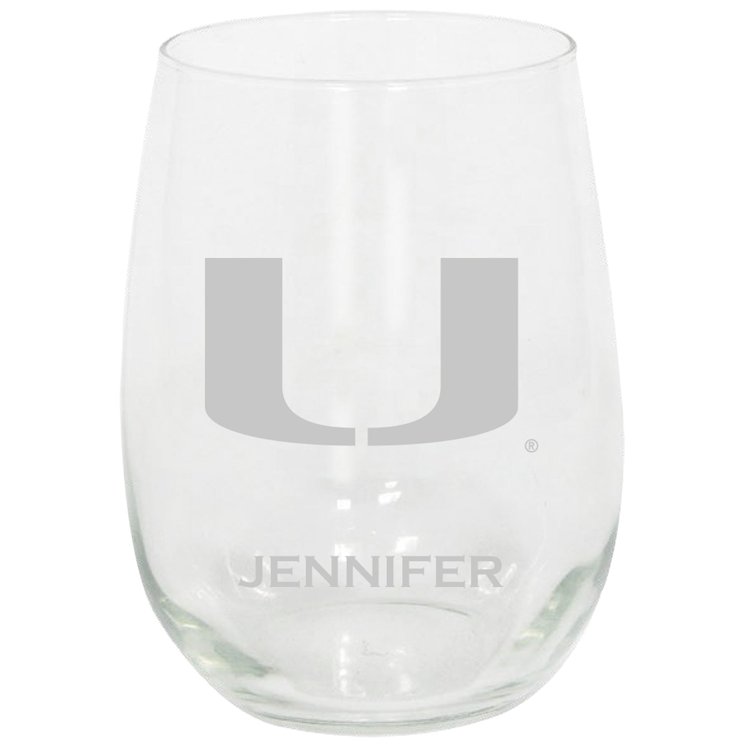 Miami Hurricanes 15oz. Personalized Stemless Etched Glass Tumbler