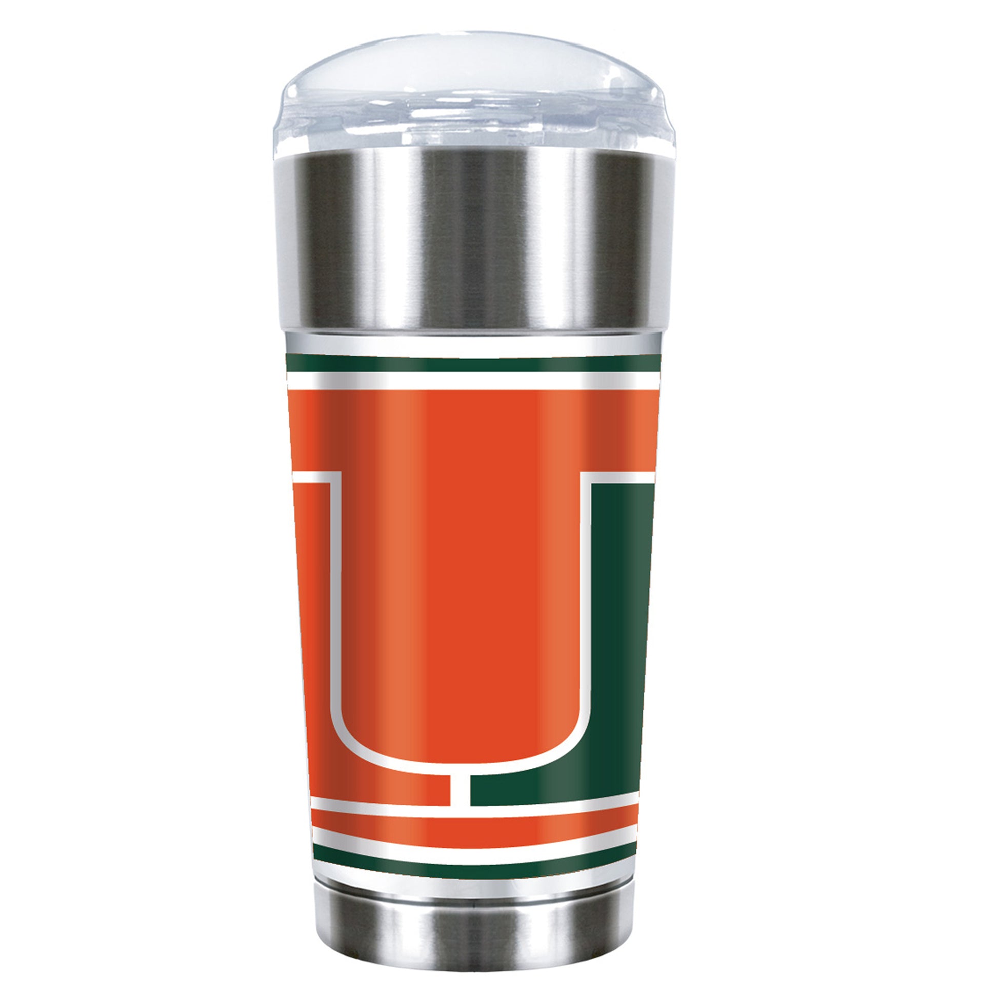 Everyone will see that you're a big Miami Hurricanes supporter when you use this 24oz. Eagle Travel Tumbler for your favorite drink. The crisp graphics will showcase your love for the Miami Hurricanes anytime with its sleek design. This drinkware is the perfect accessory on game days or every day.