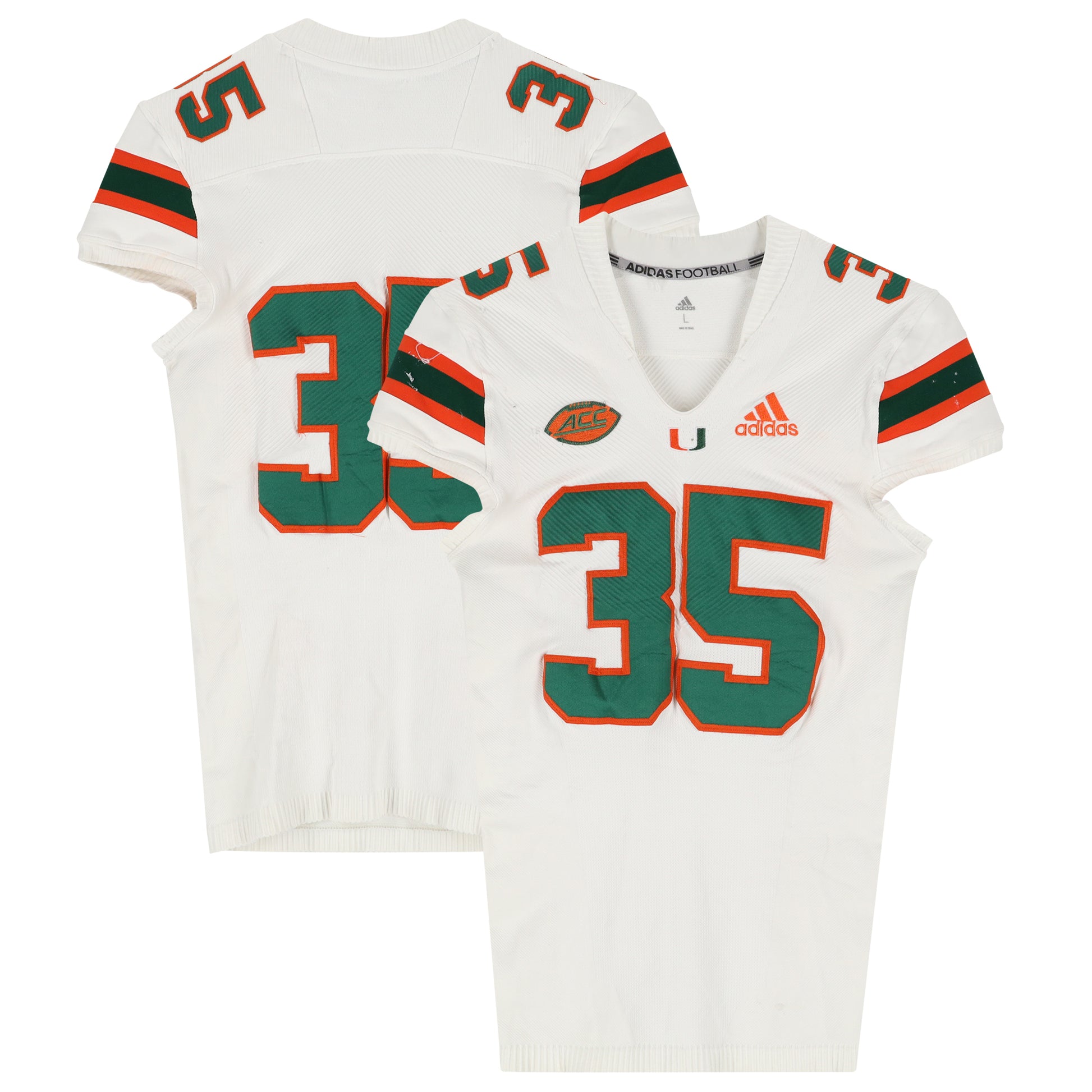 Take your collection of Miami Hurricanes memorabilia to the next level with this Team-Issued adidas #35 White Jersey from the Football Program - Size L. This official piece of game-day gear was built to team and player specifications for unmatched on-field performance. It comes complete with a Certificate of Authenticity, making it an unforgettable addition to any Miami Hurricanes fan's collection.