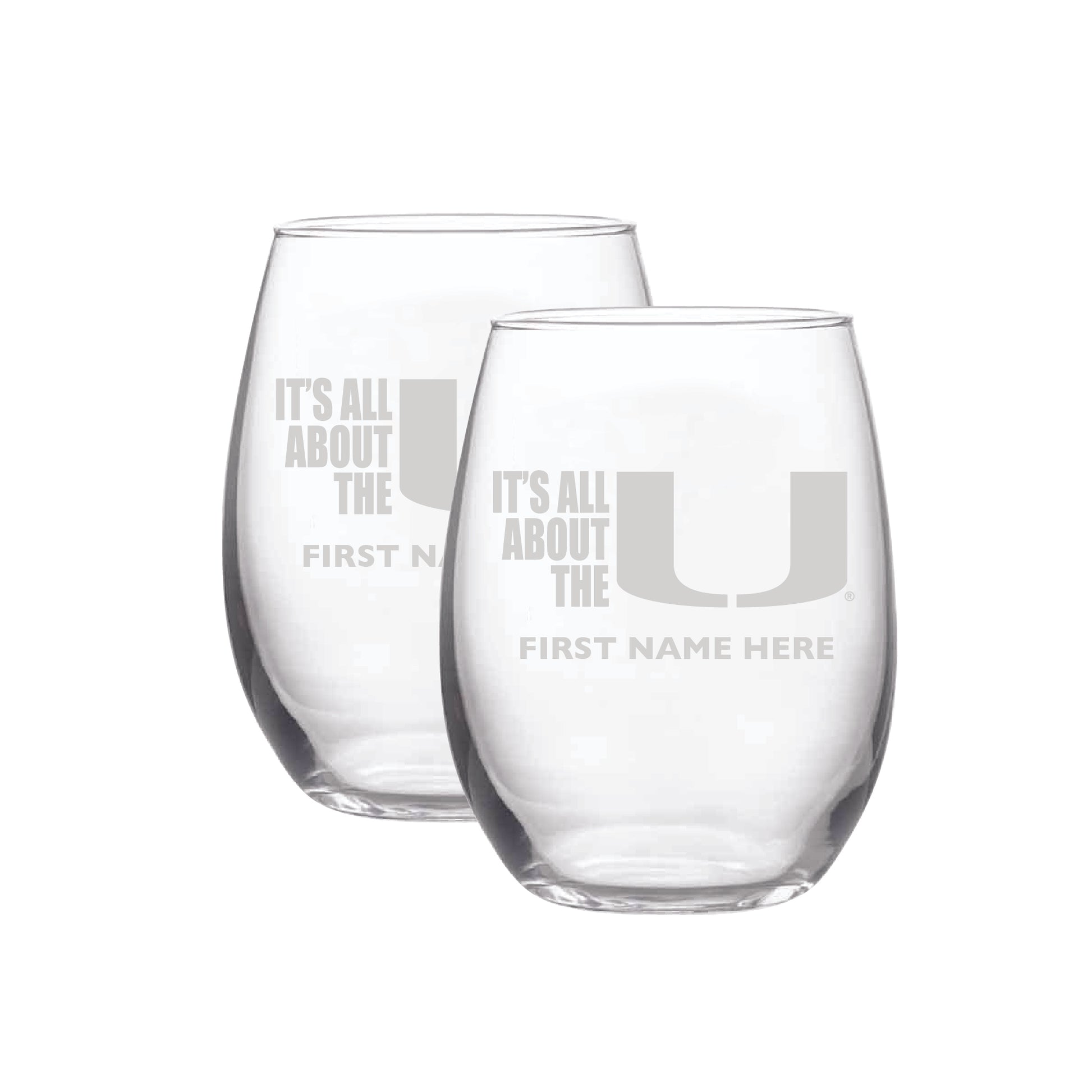 Miami Hurricanes Two-Pack 21oz. Personalized Etched Stemless Wine Glass