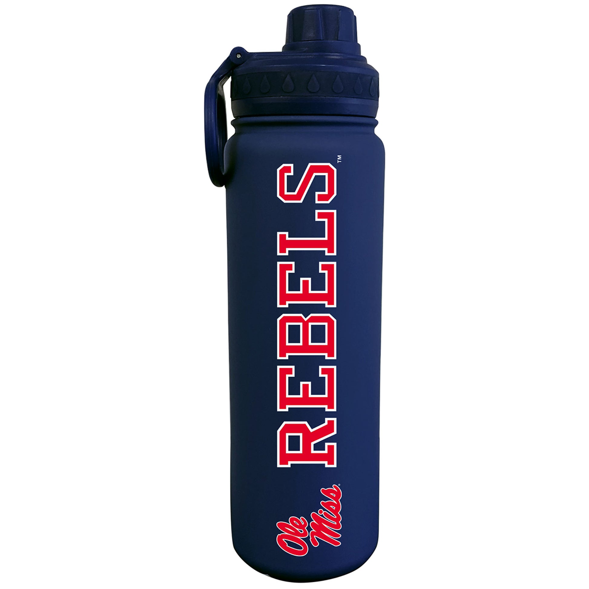 Take your beverage of choice on the go with this spirited Ole Miss Rebels 24oz. Stainless Sport Bottle. A secure lid helps prevent any spills, and the built in handle makes it easy to carry around wherever you choose to go. Printed Ole Miss Rebels graphics on this water bottle will ensure everyone knows who you're rooting for on game day!