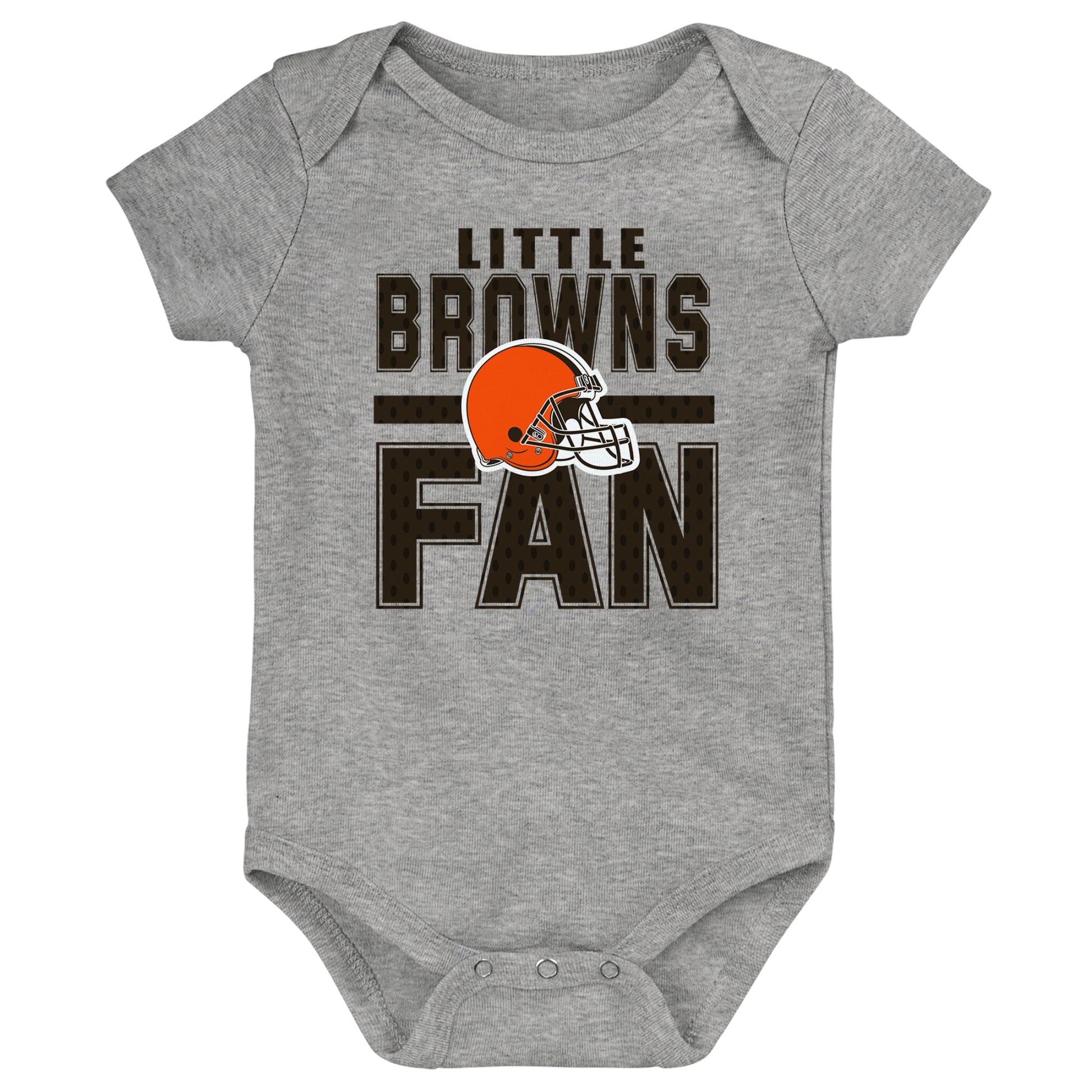 Begin instilling Cleveland Browns spirit right from infancy with this Little Fan bodysuit. It features the Cleveland Browns logo and large lettering printed on soft, heathered fabric. In addition, bottom snaps make dressing and changing easier.