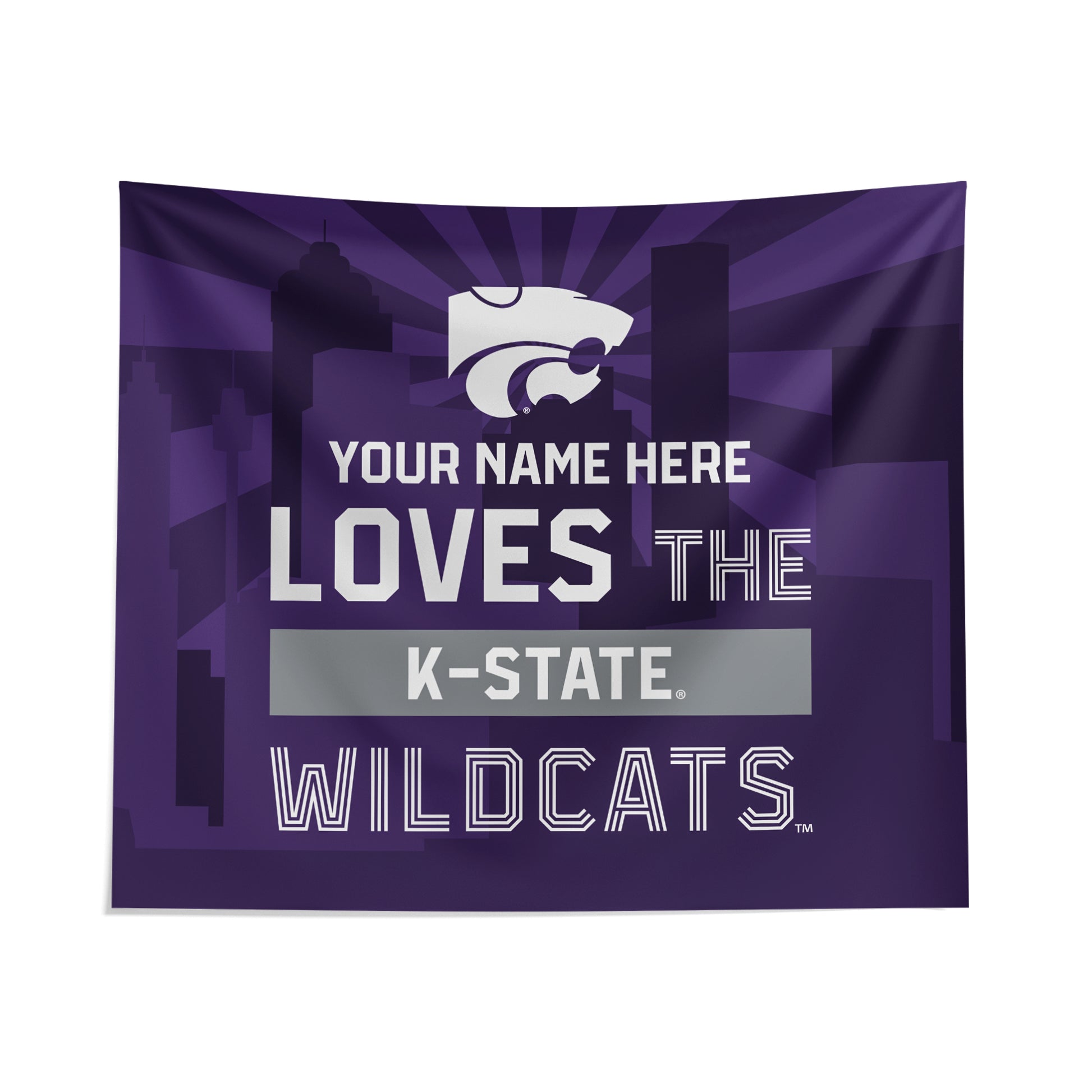 We want fans to celebrate their fandom by customizing and personalizing certain products. For these customizable products, including jerseys, we invite customers to tell us how they would like their preferred name or other text to appear by typing that text into the field indicated. However, just because a customer is able to type proposed customization text into the field and is able to complete the order through the website, not all proposed customization text will be accepted. Please note, Fanatics may reject and cancel any customization order for any reason, including for messages that are deemed offensive or inappropriate. This 51" x 60" City Skyline Personalized Wall Tapestry from Pegasus can add the perfect amount of Kansas State Wildcats spirit to any room. No one will question your allegiance with this in your fan cave. Its sublimated graphics put your fandom on full display and will have you cheering loudly for the Kansas State Wildcats.