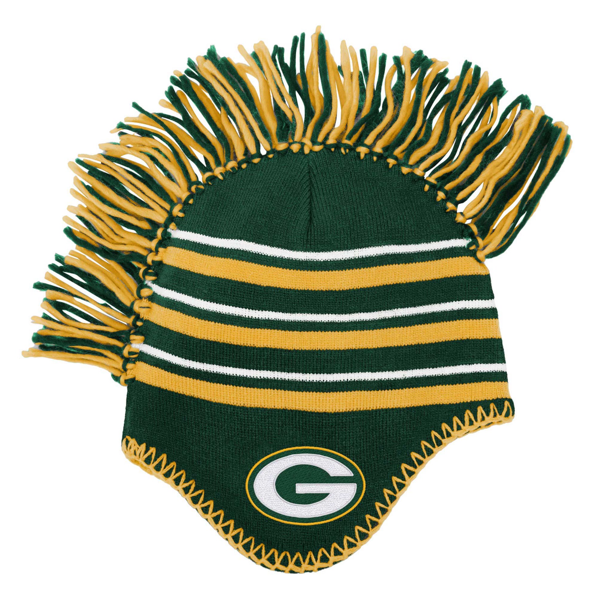 Take your kiddo's headwear game from lukewarm to absolutely on fire with this sick Green Bay Packers Stripe hat. The toasty knit fabric keeps their noggin warm as they cheer their favorite NFL team to victory. The fiery Mohawk adds extreme spirit while the vivid colorway and Green Bay Packers graphics elevate their blossoming devotion.