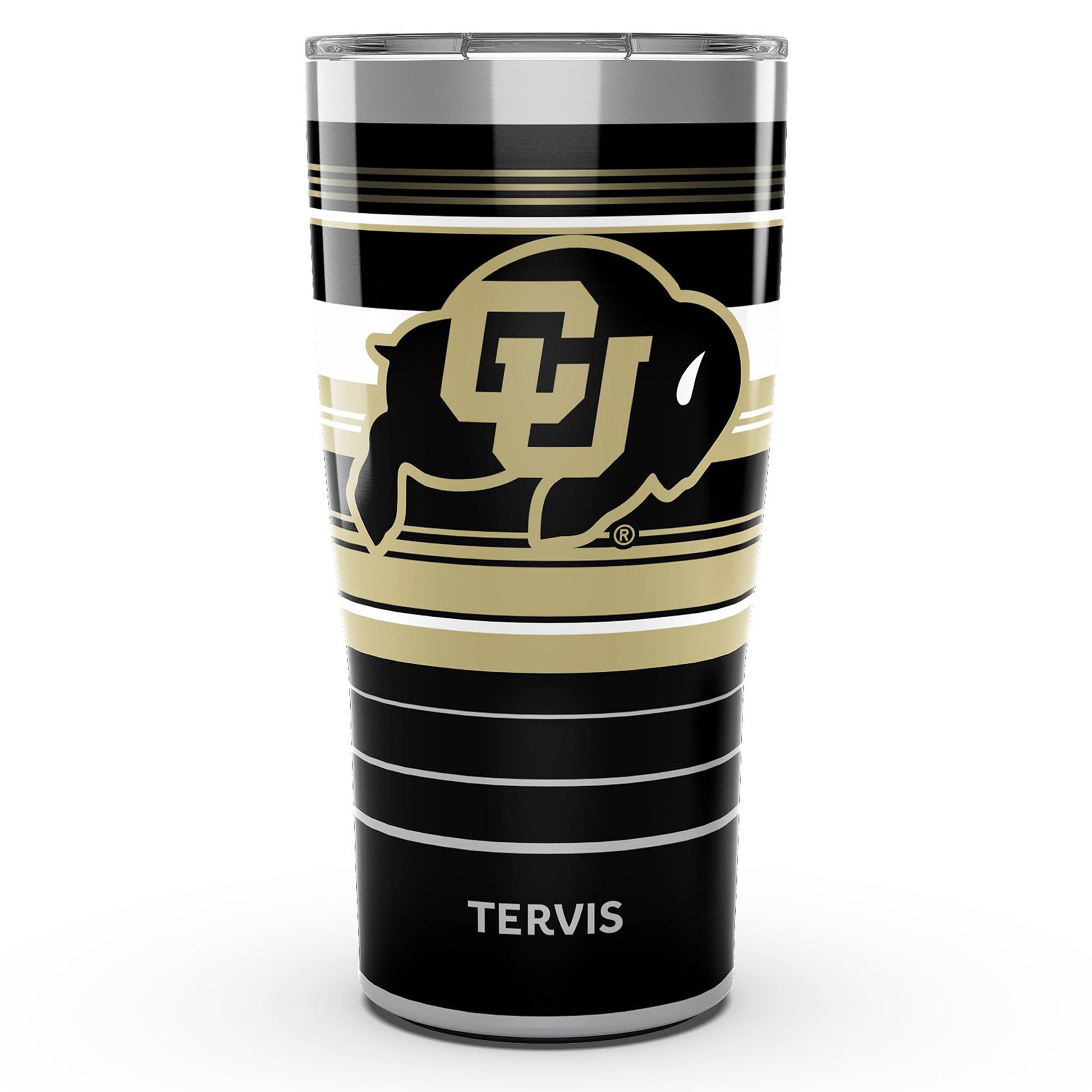 Quench your thirst while showcasing your enthusiasm for the Colorado Buffaloes with this durable Tervis 20oz. Hype Stripe tumbler. It comes complete with a snap-on lid so you can avoid unfortunate spills, even when your excitement is through the roof. The striking Colorado Buffaloes graphics and stainless steel material make every sip you take better than the last.