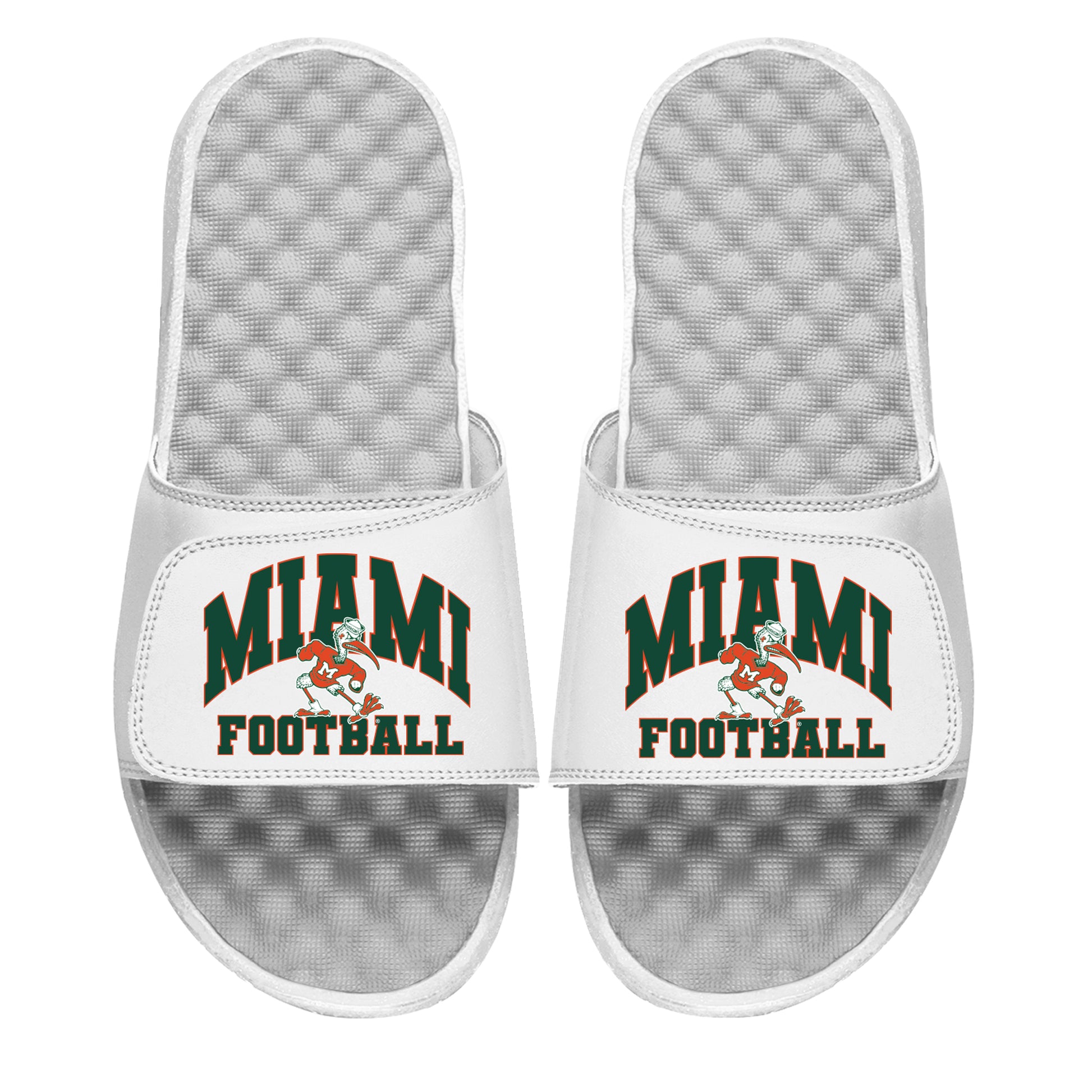 Unisex ISlide White Miami Hurricanes Football Varsity Slide Sandals